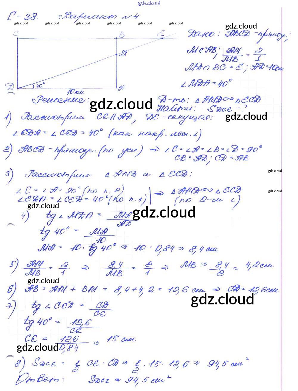 СР №38. Итоговое повторение Ответы к Самостоятельным работам по Геометрии 8 класс Дидактические материалы Зив Просвещение
