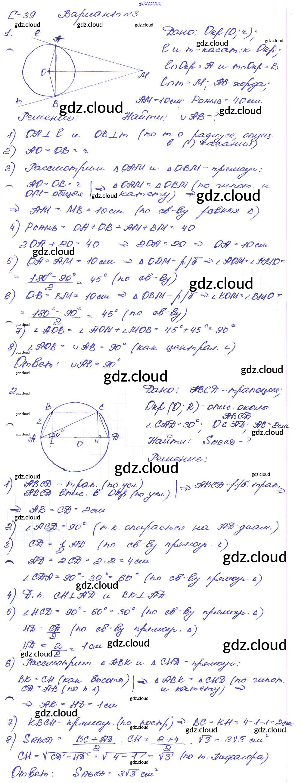 СР №39. Итоговое повторение (окружность) Ответы к Самостоятельным работам по Геометрии 8 класс Дидактические материалы Зив Просвещение