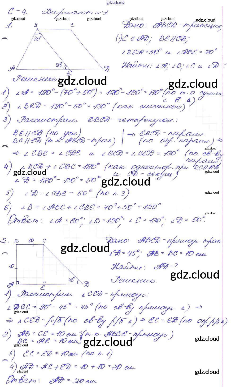 СР №4. Трапеция Ответы к Самостоятельным работам по Геометрии 8 класс Дидактические материалы Зив Просвещение
