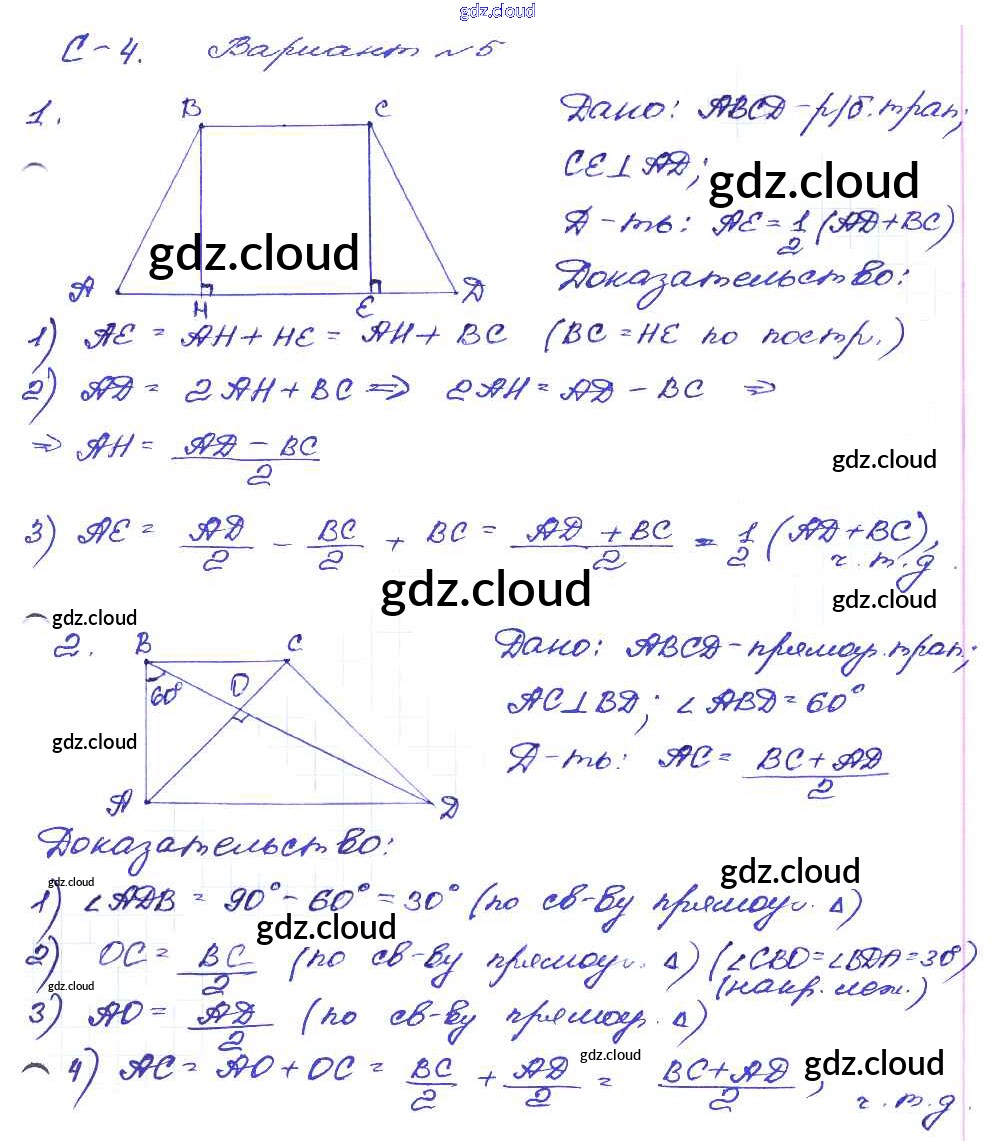 СР №4. Трапеция Ответы к Самостоятельным работам по Геометрии 8 класс Дидактические материалы Зив Просвещение