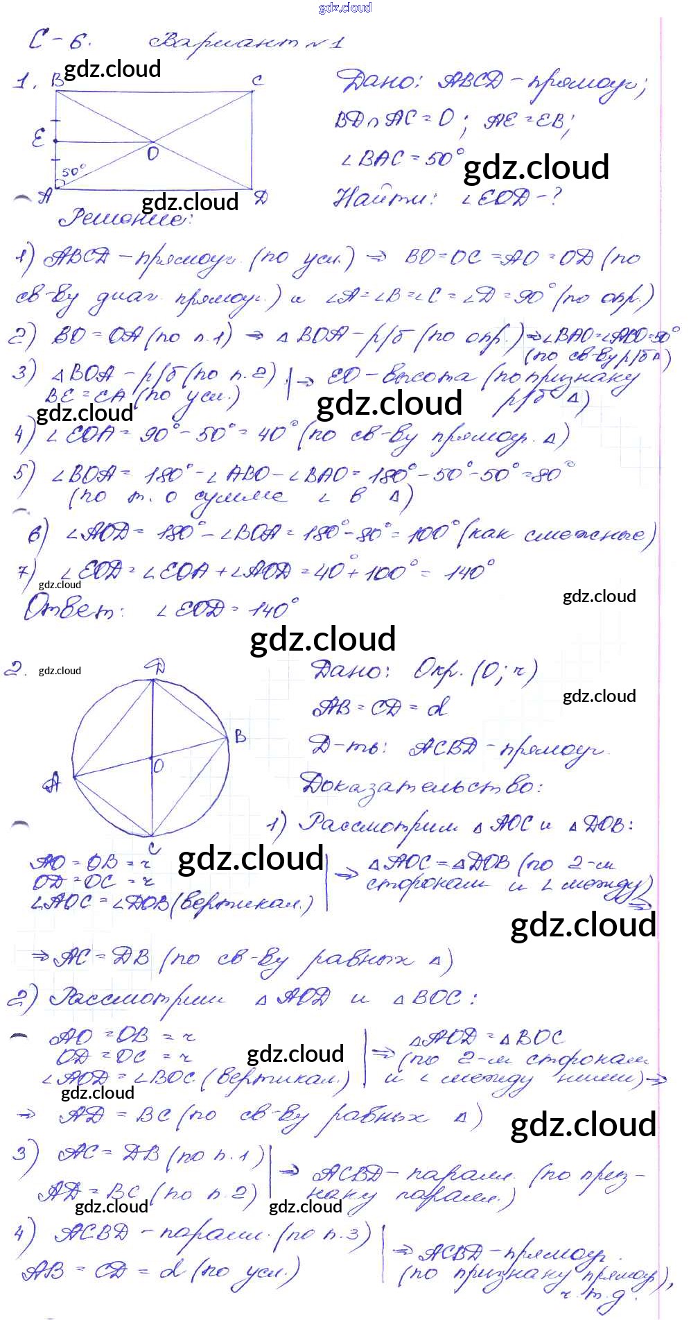 СР №6. Прямоугольник Ответы к Самостоятельным работам по Геометрии 8 класс Дидактические материалы Зив Просвещение