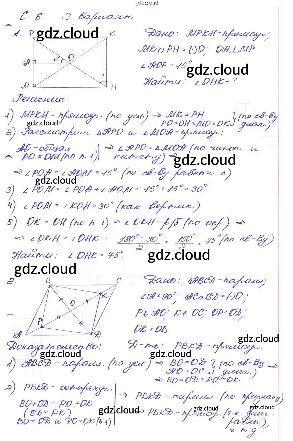 СР №6. Прямоугольник Ответы к Самостоятельным работам по Геометрии 8 класс Дидактические материалы Зив Просвещение