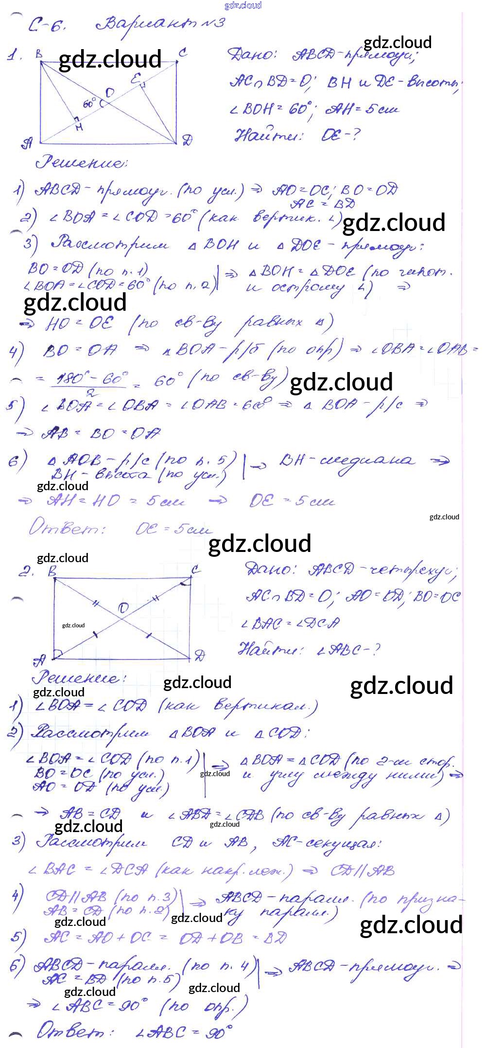 СР №6. Прямоугольник Ответы к Самостоятельным работам по Геометрии 8 класс Дидактические материалы Зив Просвещение