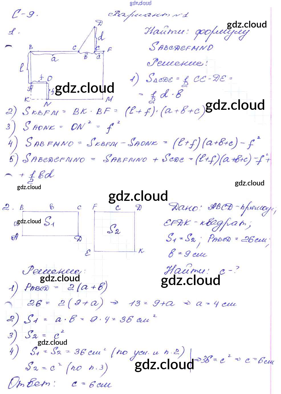 СР №9. Свойства площадей многоугольников, квадрата и прямоугольника Ответы к Самостоятельным работам по Геометрии 8 класс Дидактические материалы Зив Просвещение