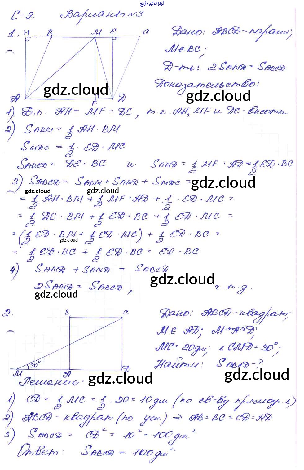 СР №9. Свойства площадей многоугольников, квадрата и прямоугольника Ответы к Самостоятельным работам по Геометрии 8 класс Дидактические материалы Зив Просвещение