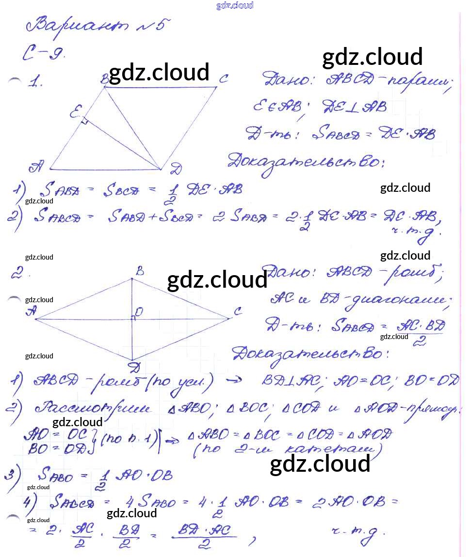 СР №9. Свойства площадей многоугольников, квадрата и прямоугольника Ответы к Самостоятельным работам по Геометрии 8 класс Дидактические материалы Зив Просвещение