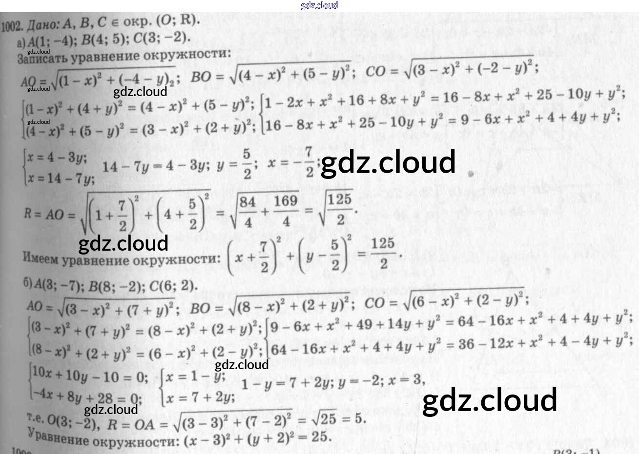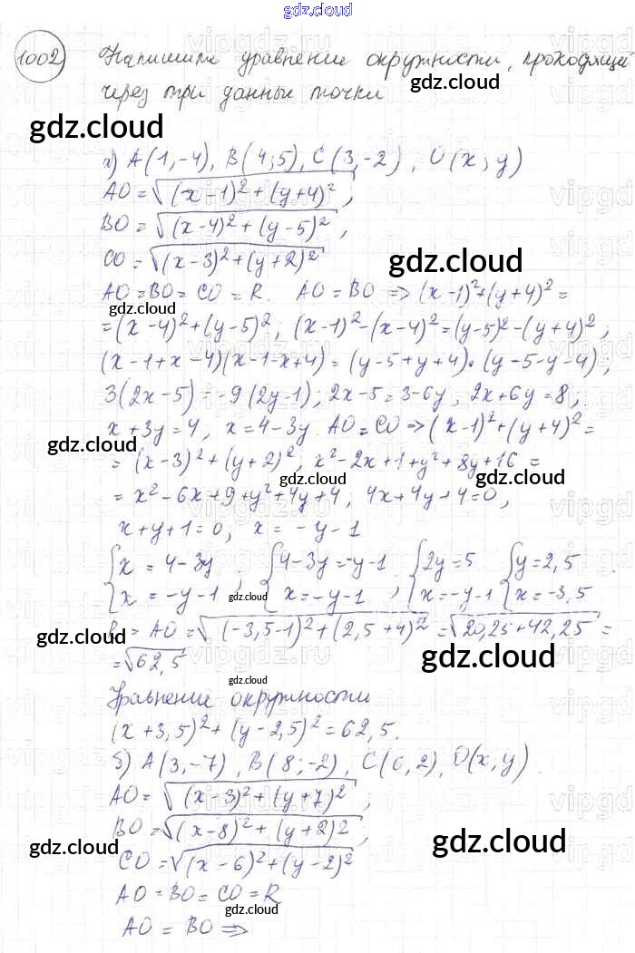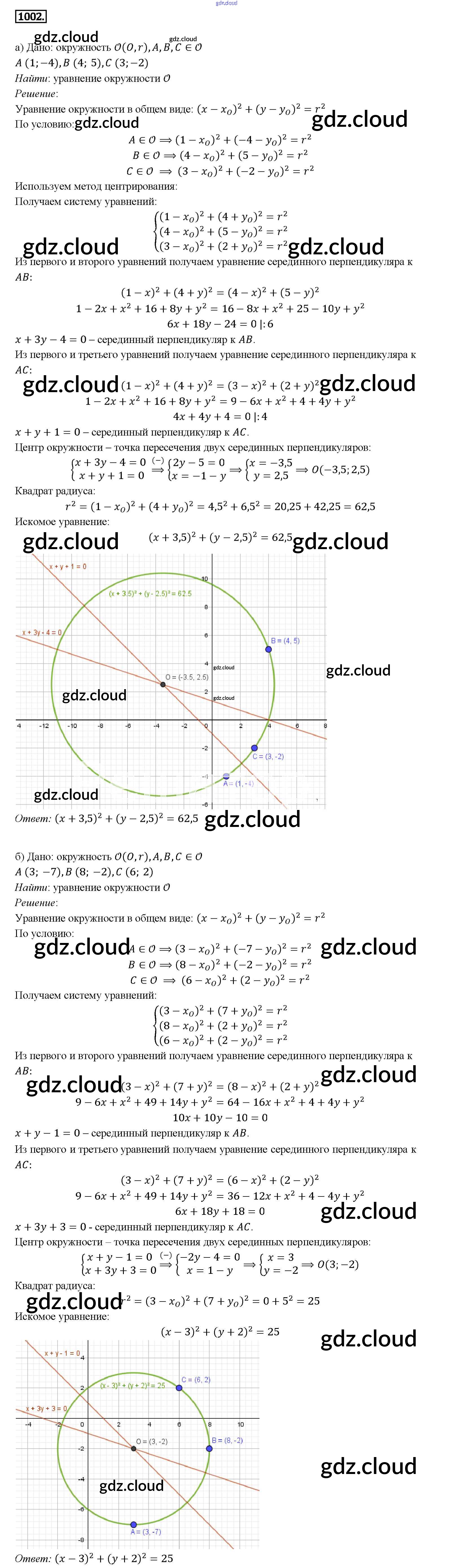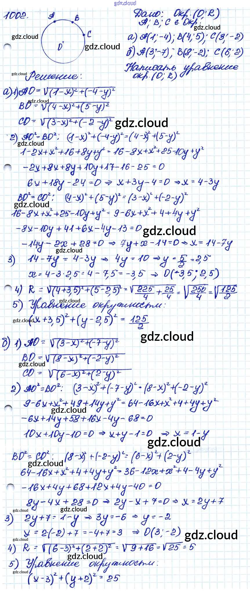 Ответ на задание 1002 Учебник Геометрия за 7, 8, 9 (седьмой, восьмой, девятый) класс Атанасян, Бутузов, Кадомцев 2010