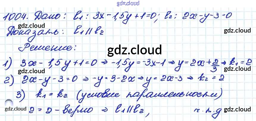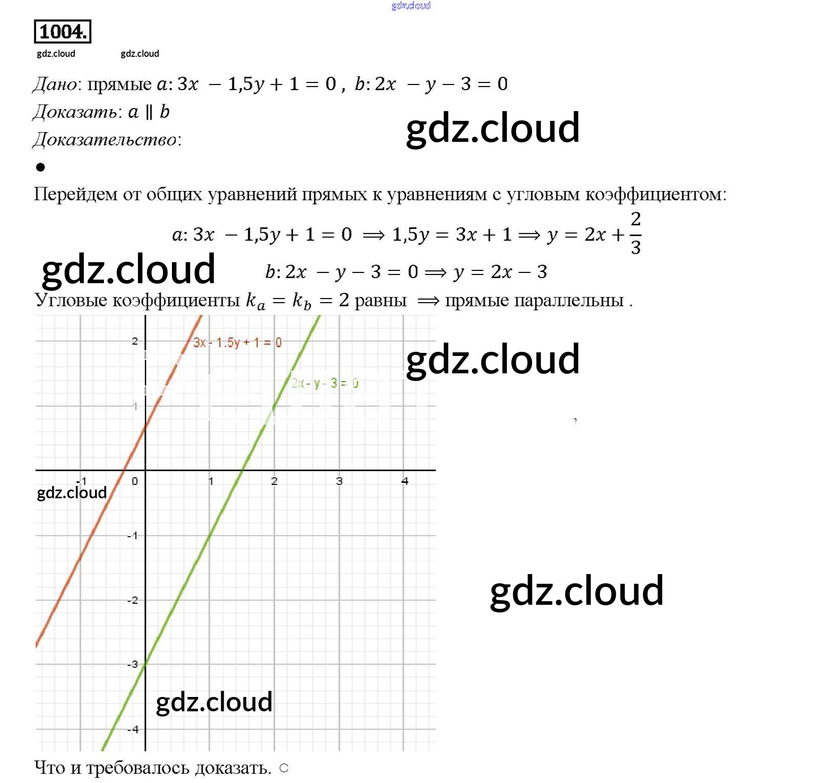 Ответ на задание 1004 Учебник Геометрия за 7, 8, 9 (седьмой, восьмой, девятый) класс Атанасян, Бутузов, Кадомцев 2010