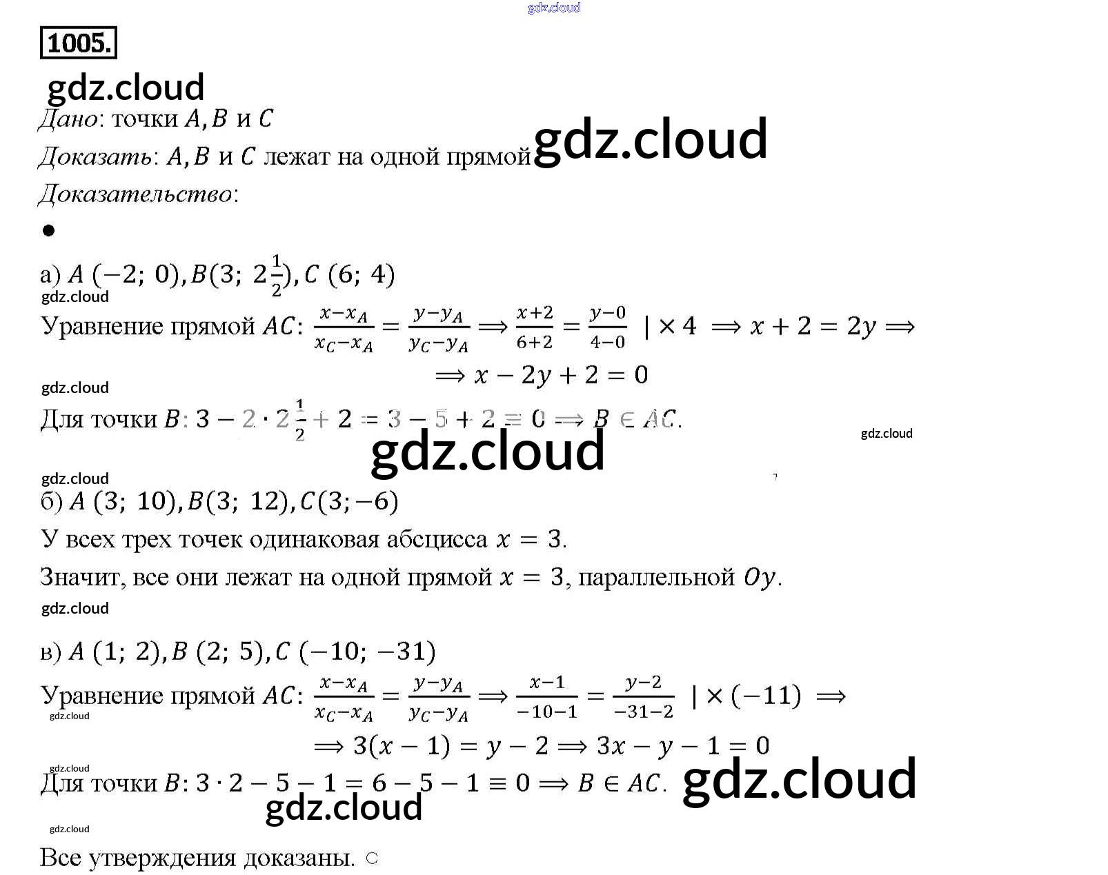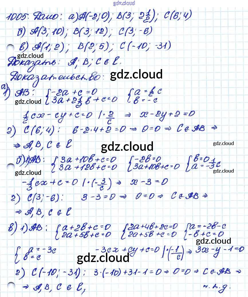 Ответ на задание 1005 Учебник Геометрия за 7, 8, 9 (седьмой, восьмой, девятый) класс Атанасян, Бутузов, Кадомцев 2010