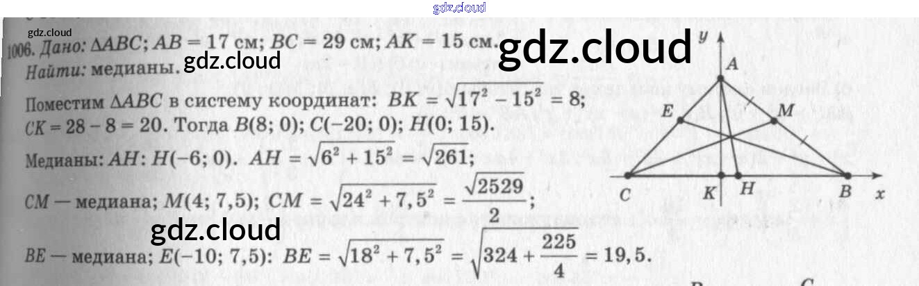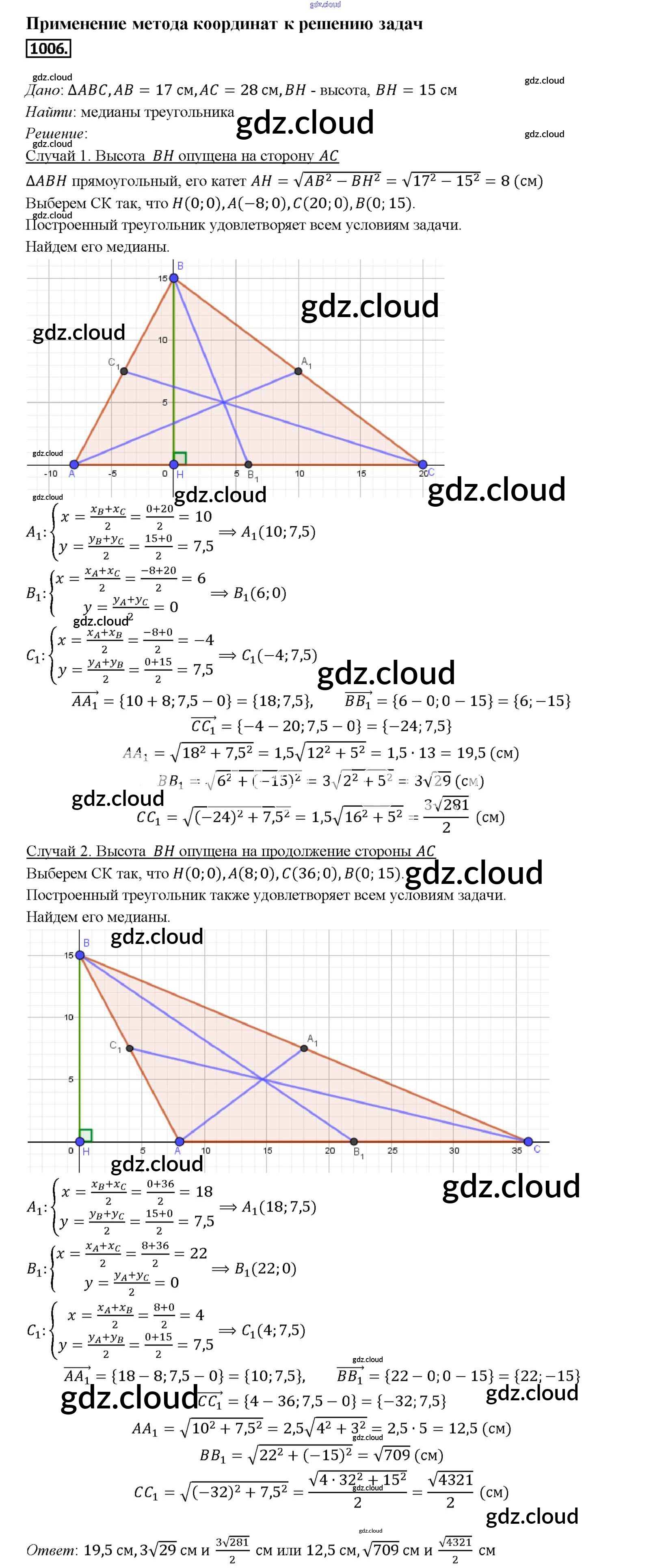 Ответ на задание 1006 Учебник Геометрия за 7, 8, 9 (седьмой, восьмой, девятый) класс Атанасян, Бутузов, Кадомцев 2010