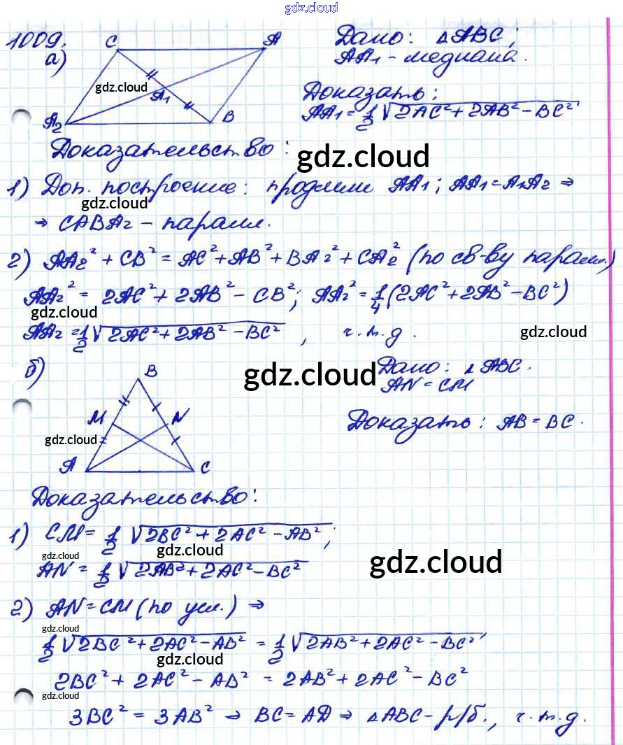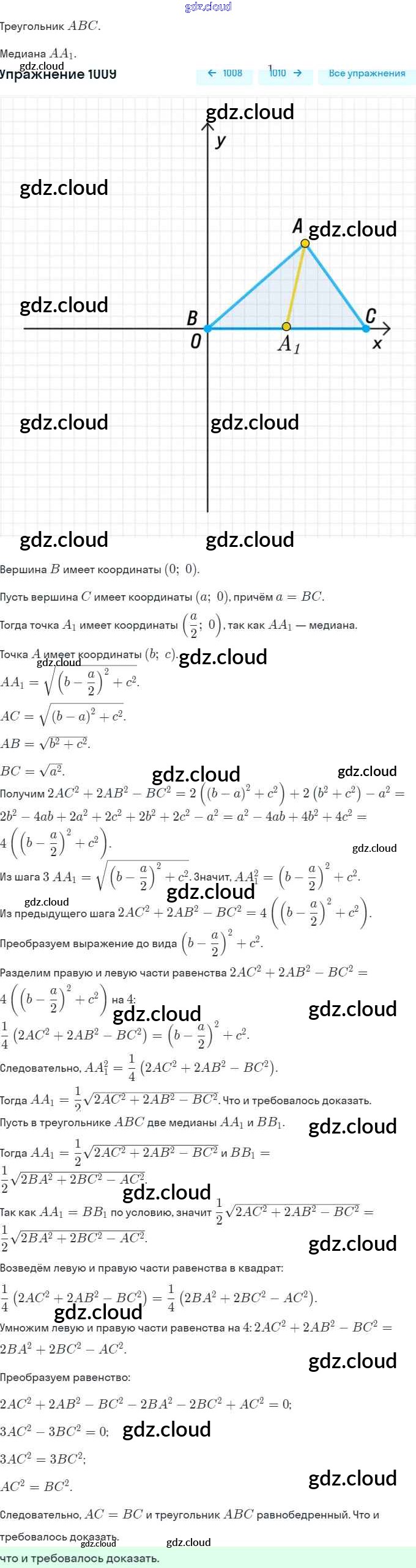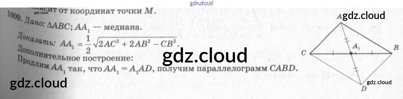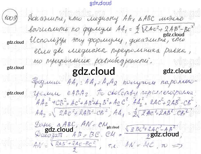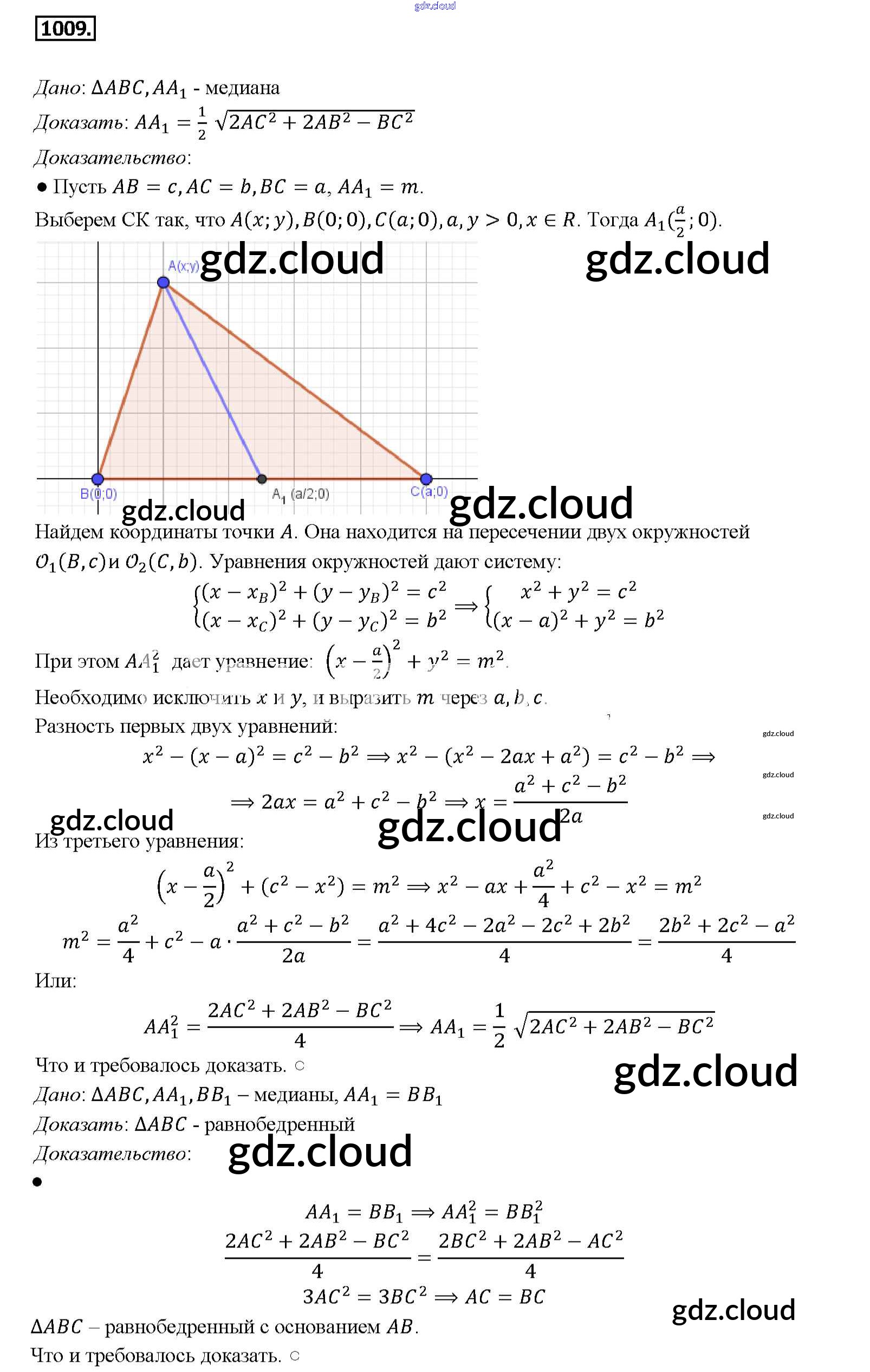 Ответ на задание 1009 Учебник Геометрия за 7, 8, 9 (седьмой, восьмой, девятый) класс Атанасян, Бутузов, Кадомцев 2010