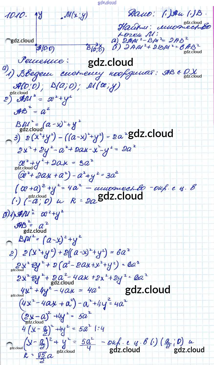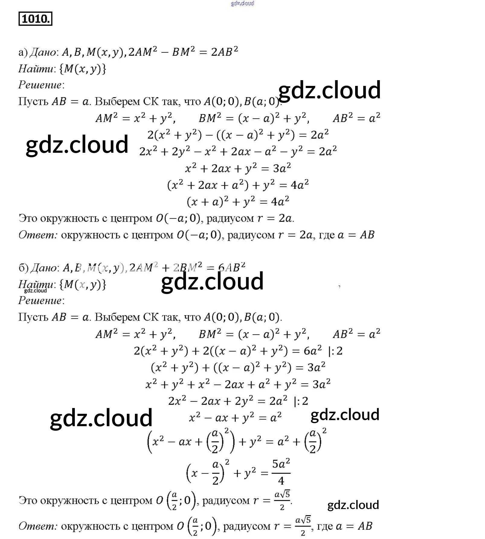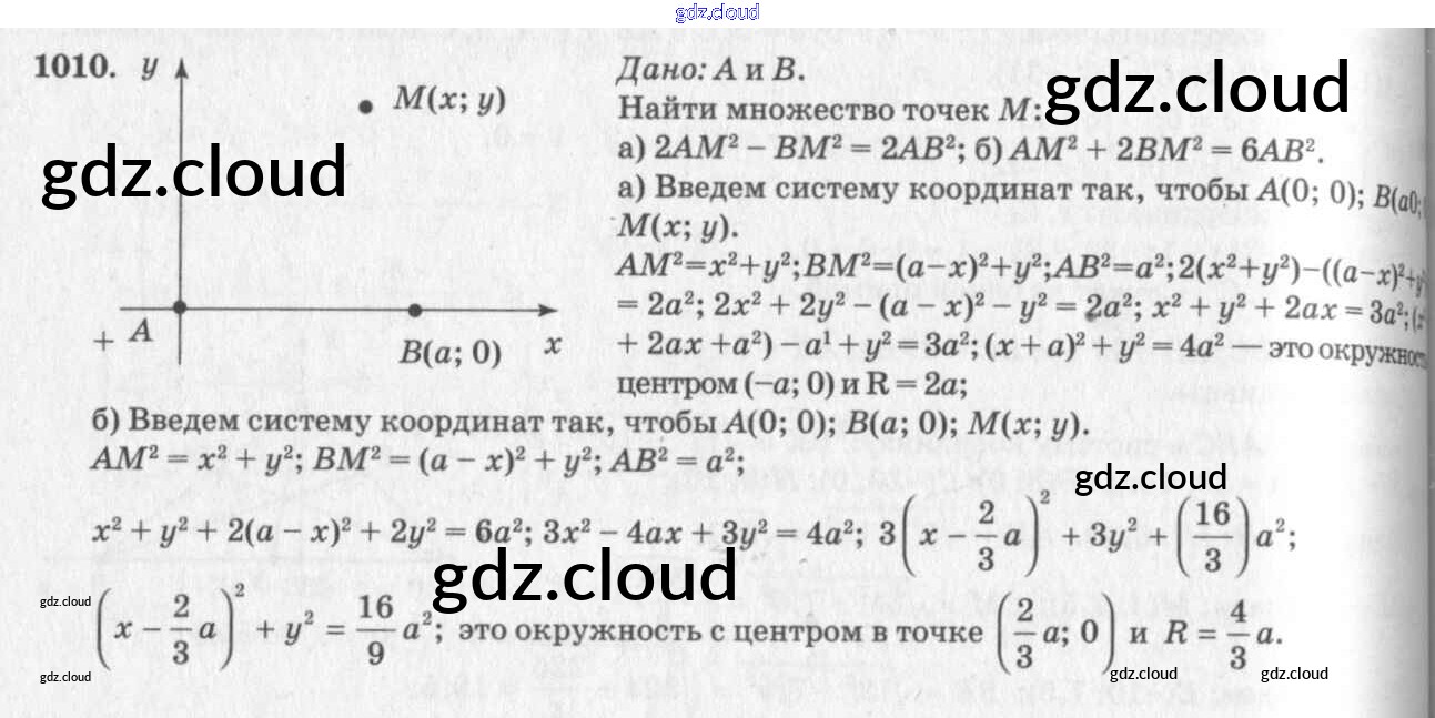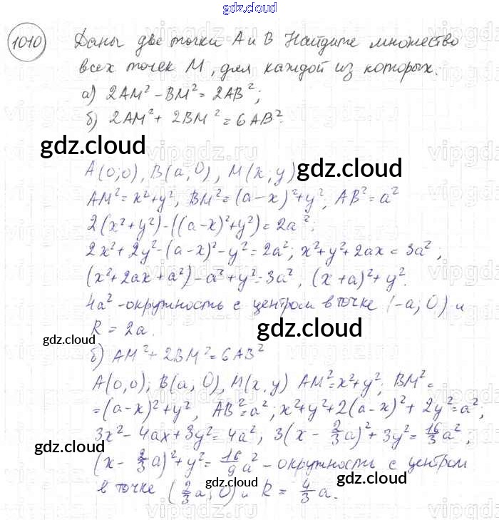 Ответ на задание 1010 Учебник Геометрия за 7, 8, 9 (седьмой, восьмой, девятый) класс Атанасян, Бутузов, Кадомцев 2010