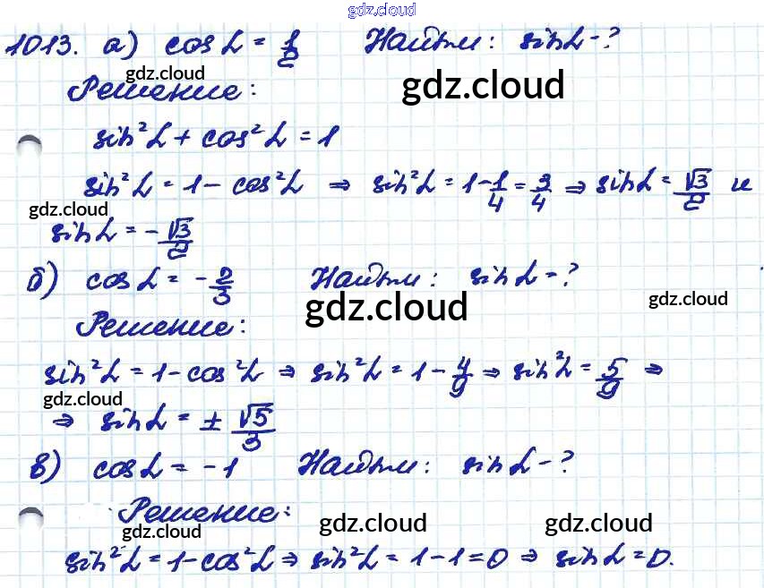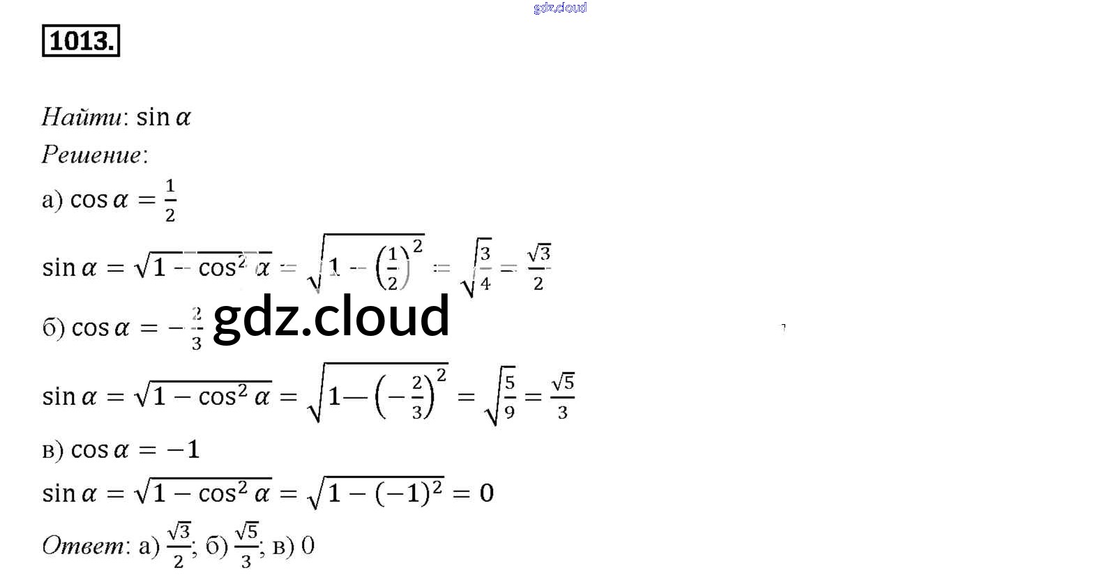 Ответ на задание 1013 Учебник Геометрия за 7, 8, 9 (седьмой, восьмой, девятый) класс Атанасян, Бутузов, Кадомцев 2010