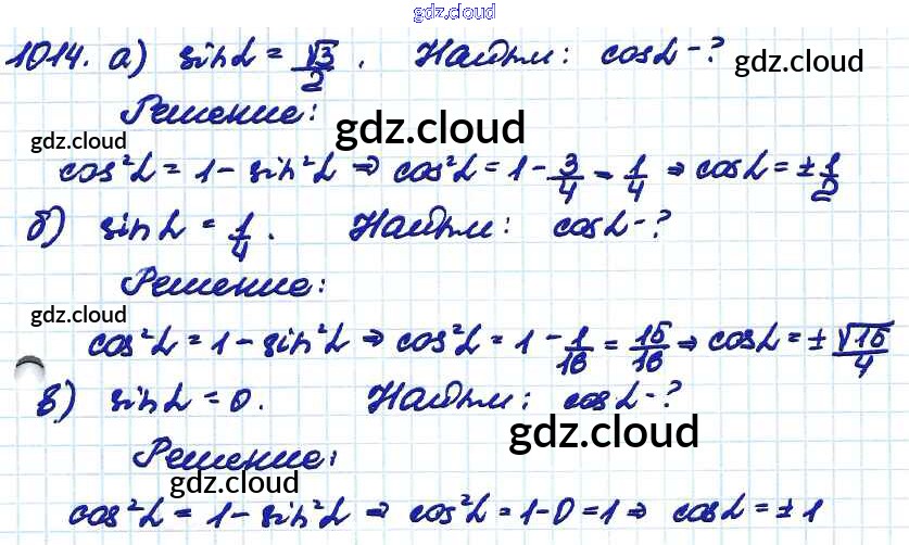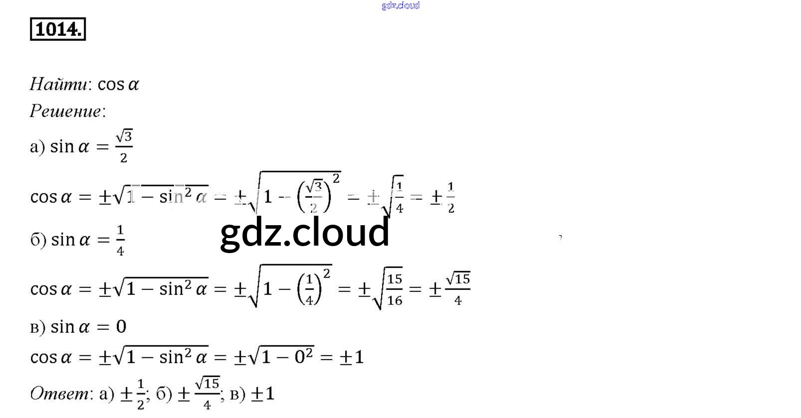 Ответ на задание 1014 Учебник Геометрия за 7, 8, 9 (седьмой, восьмой, девятый) класс Атанасян, Бутузов, Кадомцев 2010