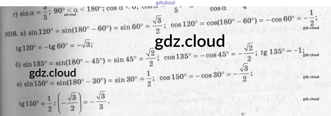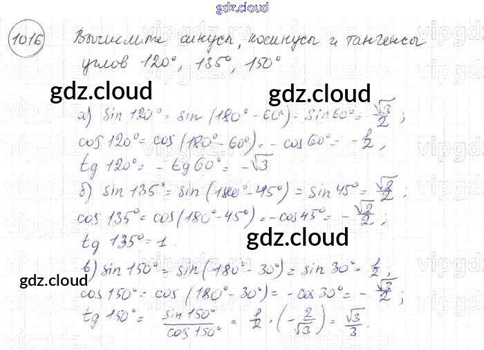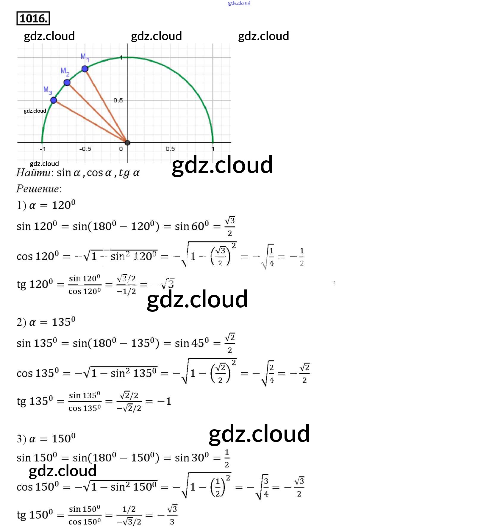 Ответ на задание 1016 Учебник Геометрия за 7, 8, 9 (седьмой, восьмой, девятый) класс Атанасян, Бутузов, Кадомцев 2010
