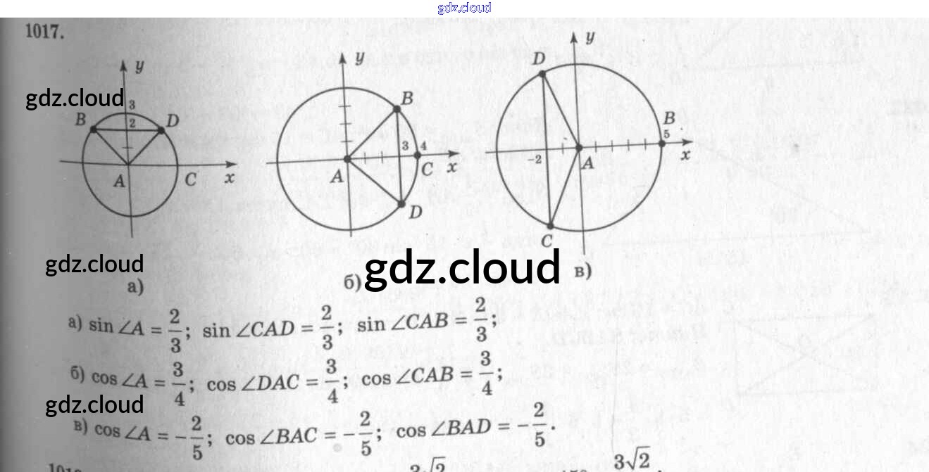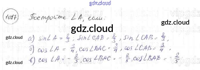 Ответ на задание 1017 Учебник Геометрия за 7, 8, 9 (седьмой, восьмой, девятый) класс Атанасян, Бутузов, Кадомцев 2010