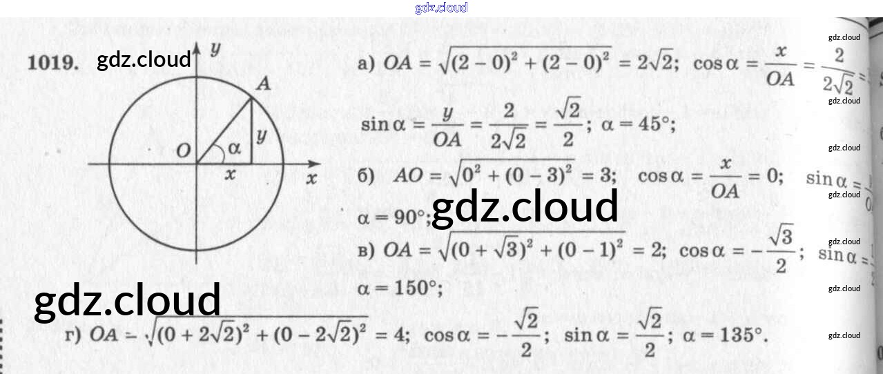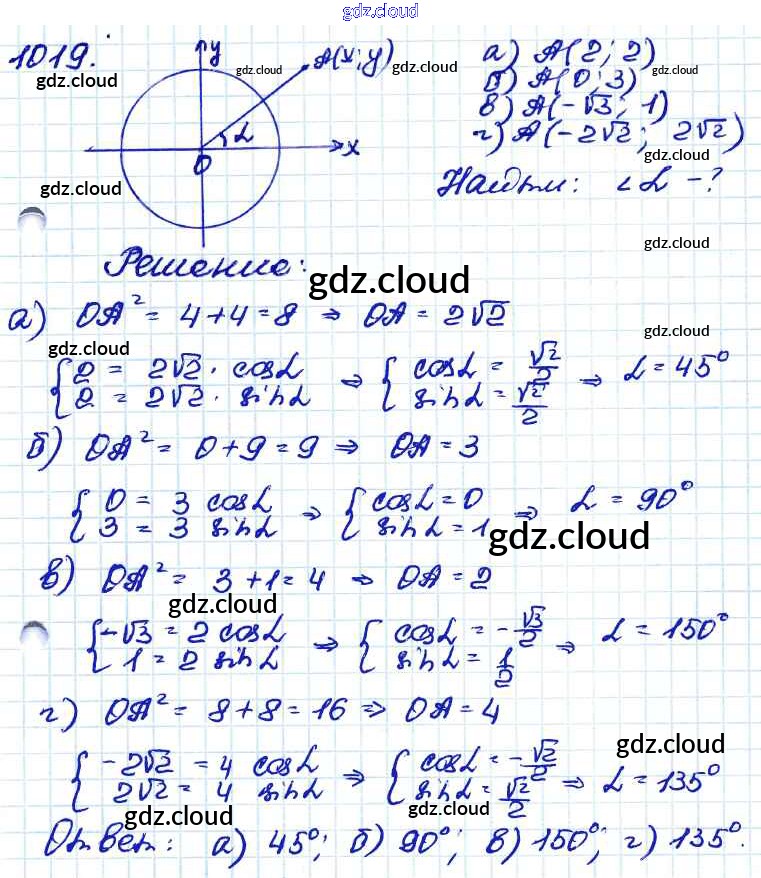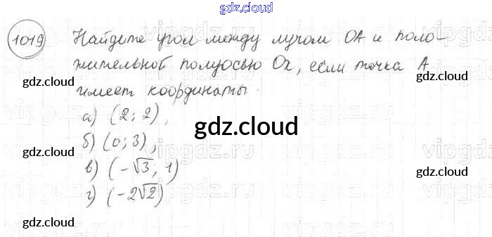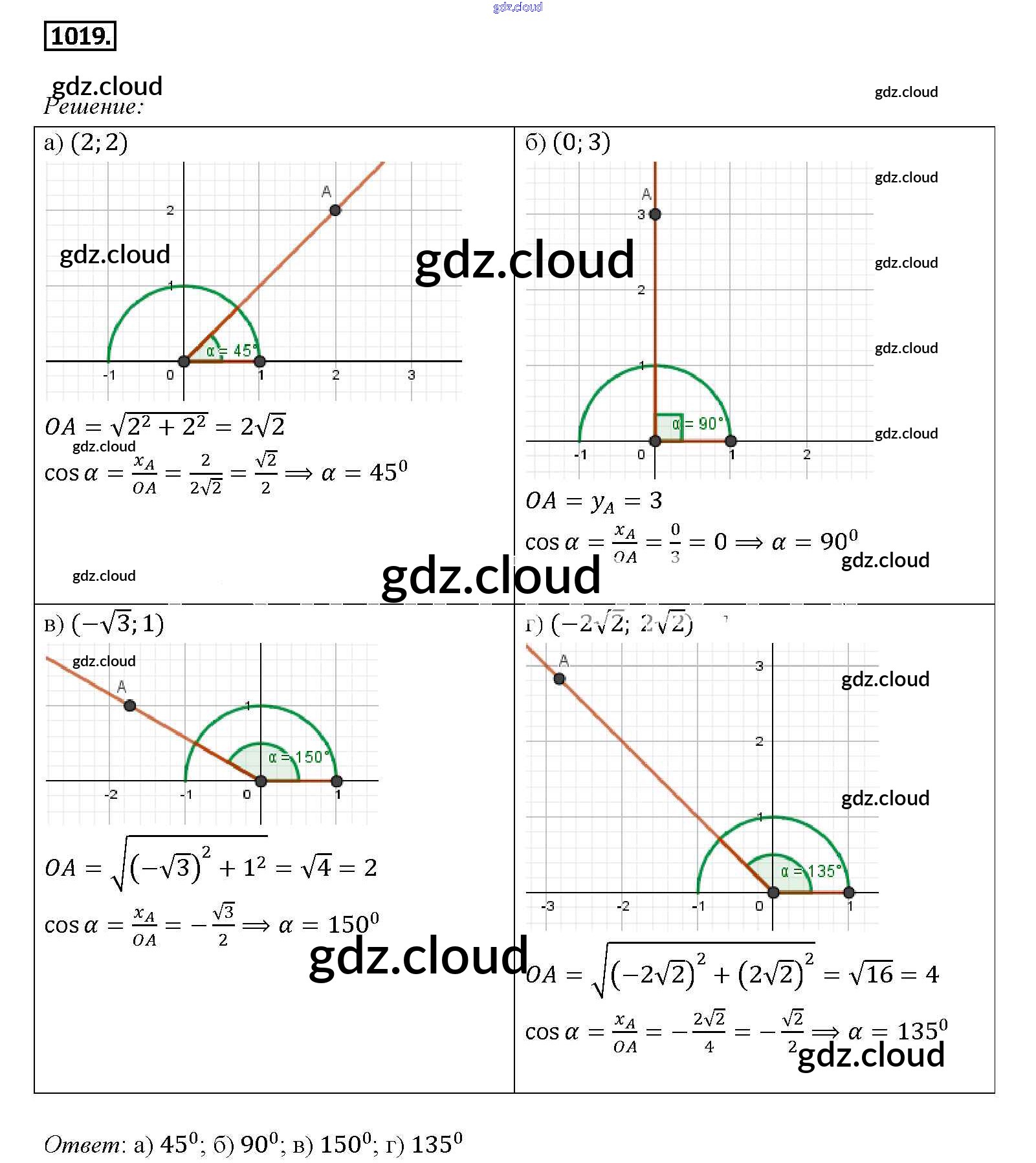 Ответ на задание 1019 Учебник Геометрия за 7, 8, 9 (седьмой, восьмой, девятый) класс Атанасян, Бутузов, Кадомцев 2010