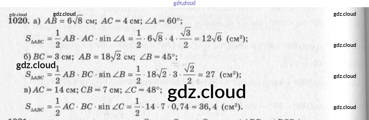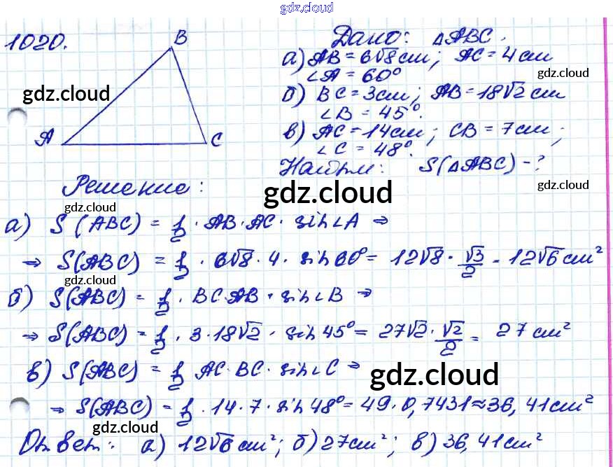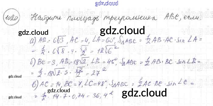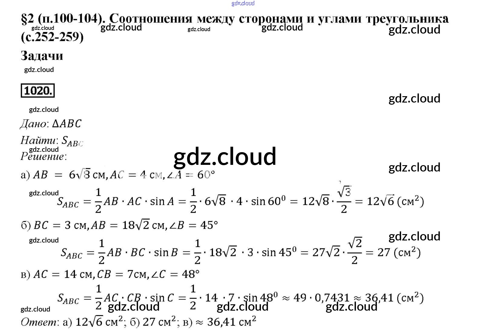 Ответ на задание 1020 Учебник Геометрия за 7, 8, 9 (седьмой, восьмой, девятый) класс Атанасян, Бутузов, Кадомцев 2010