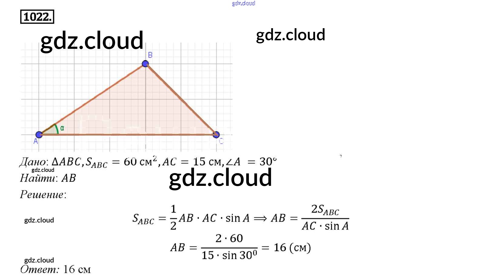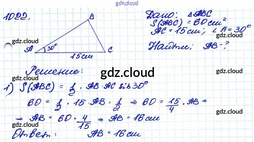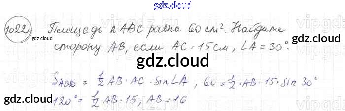 Ответ на задание 1022 Учебник Геометрия за 7, 8, 9 (седьмой, восьмой, девятый) класс Атанасян, Бутузов, Кадомцев 2010