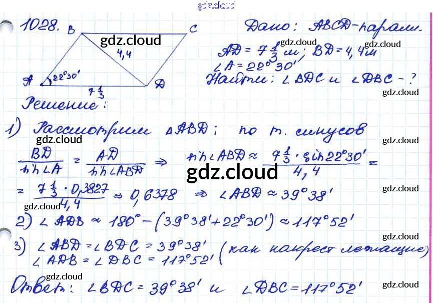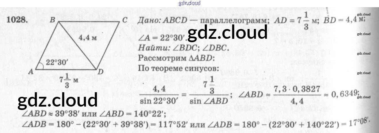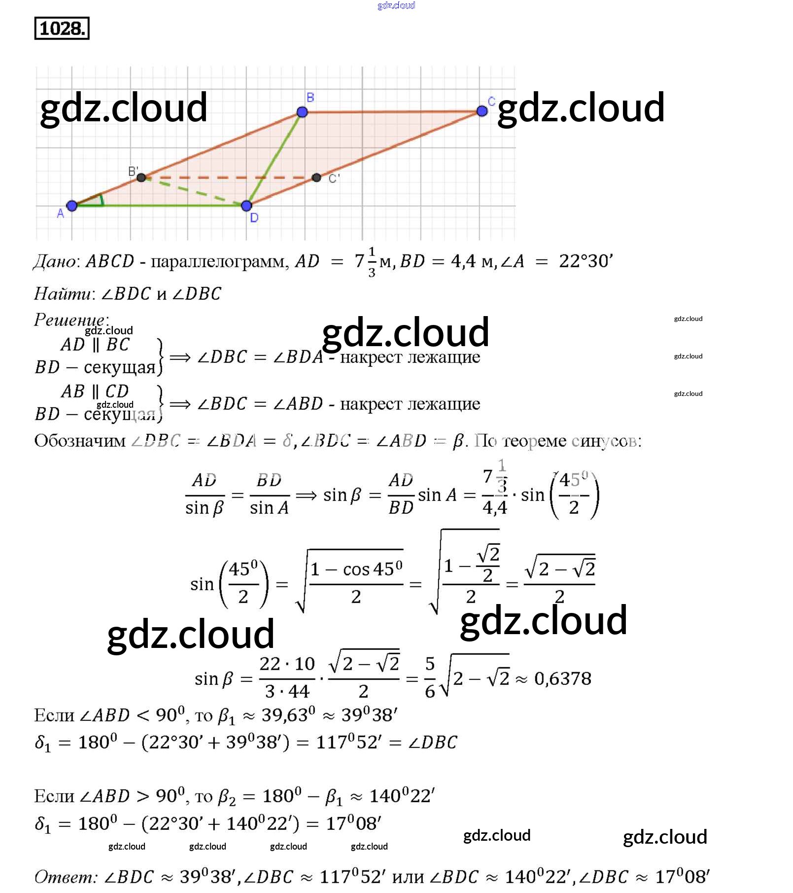 Ответ на задание 1028 Учебник Геометрия за 7, 8, 9 (седьмой, восьмой, девятый) класс Атанасян, Бутузов, Кадомцев 2010