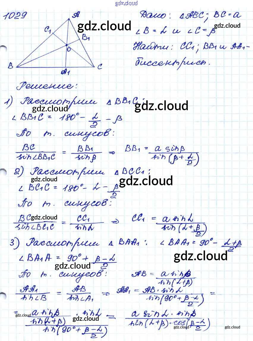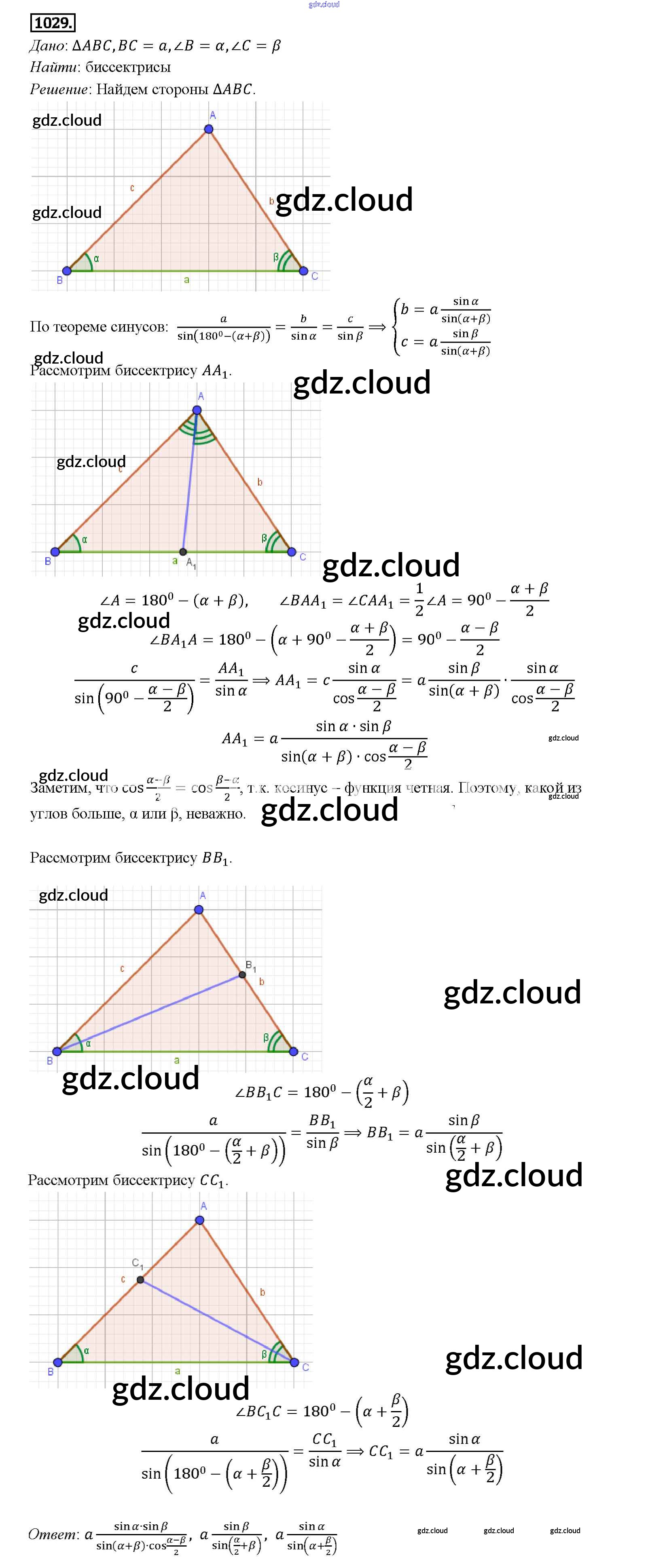 Ответ на задание 1029 Учебник Геометрия за 7, 8, 9 (седьмой, восьмой, девятый) класс Атанасян, Бутузов, Кадомцев 2010