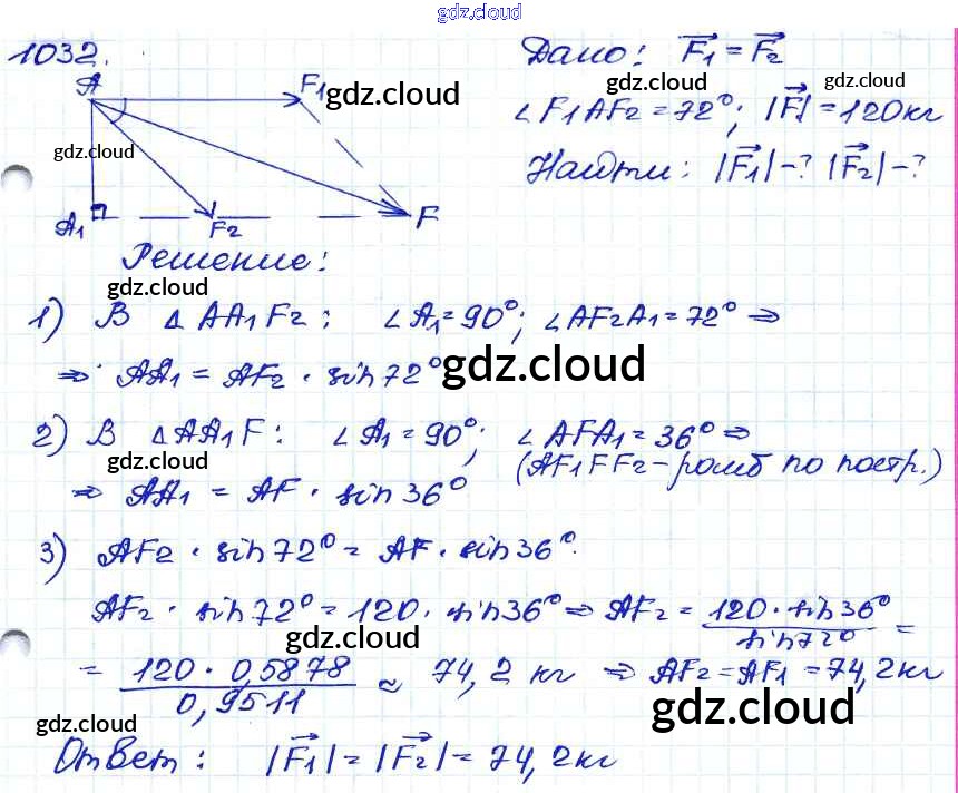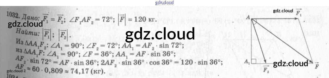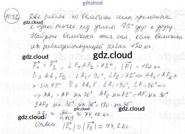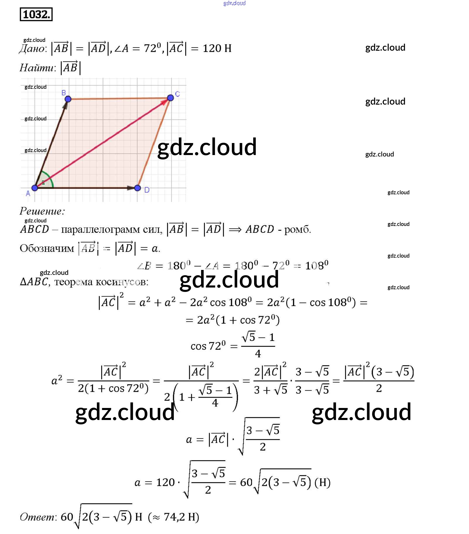 Ответ на задание 1032 Учебник Геометрия за 7, 8, 9 (седьмой, восьмой, девятый) класс Атанасян, Бутузов, Кадомцев 2010