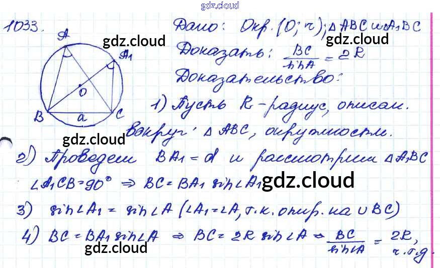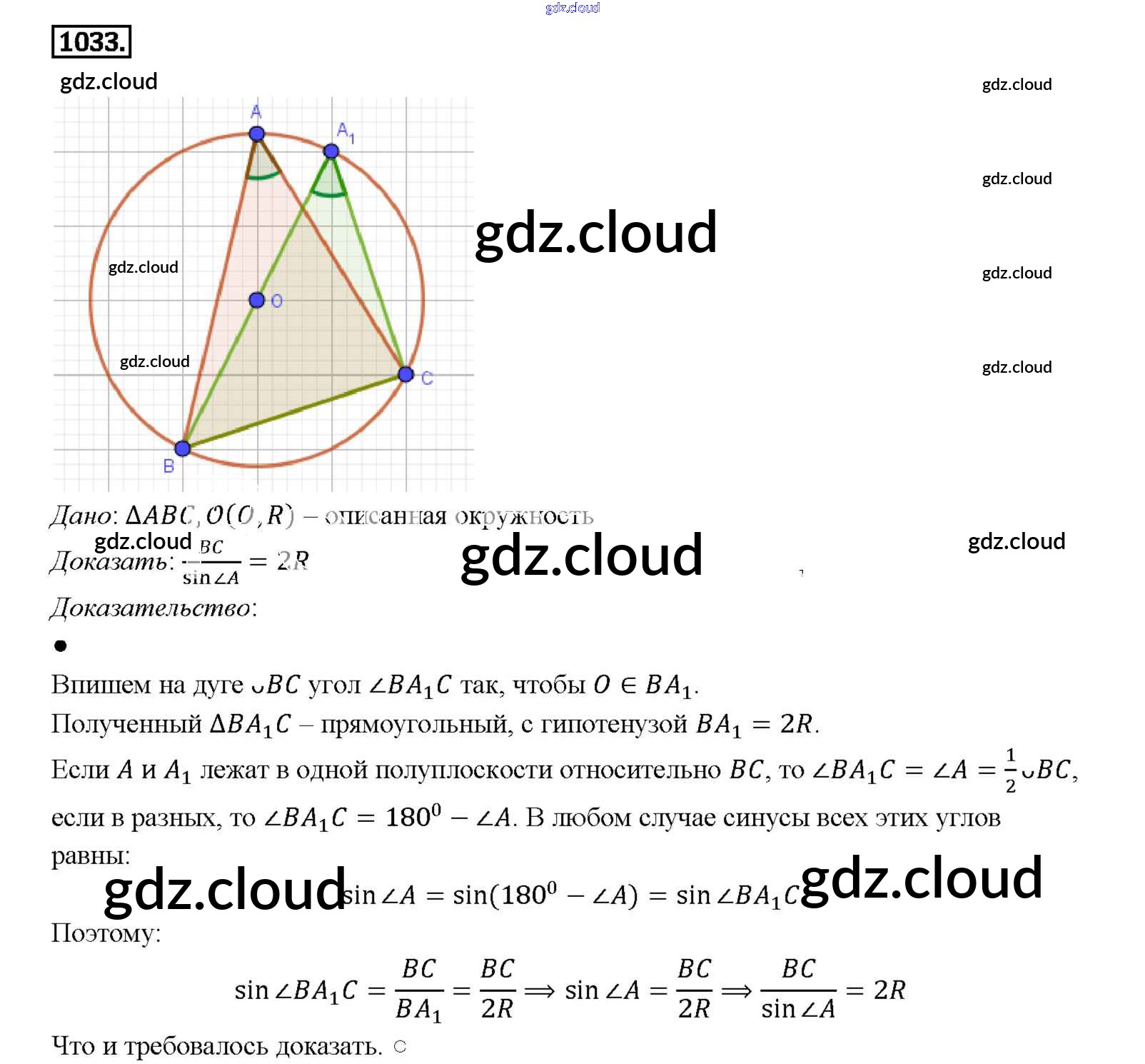 Ответ на задание 1033 Учебник Геометрия за 7, 8, 9 (седьмой, восьмой, девятый) класс Атанасян, Бутузов, Кадомцев 2010