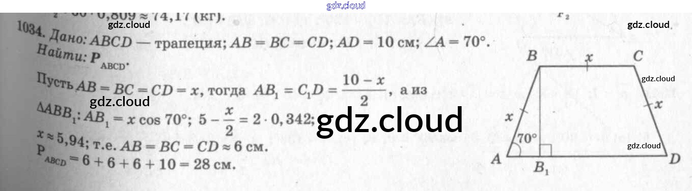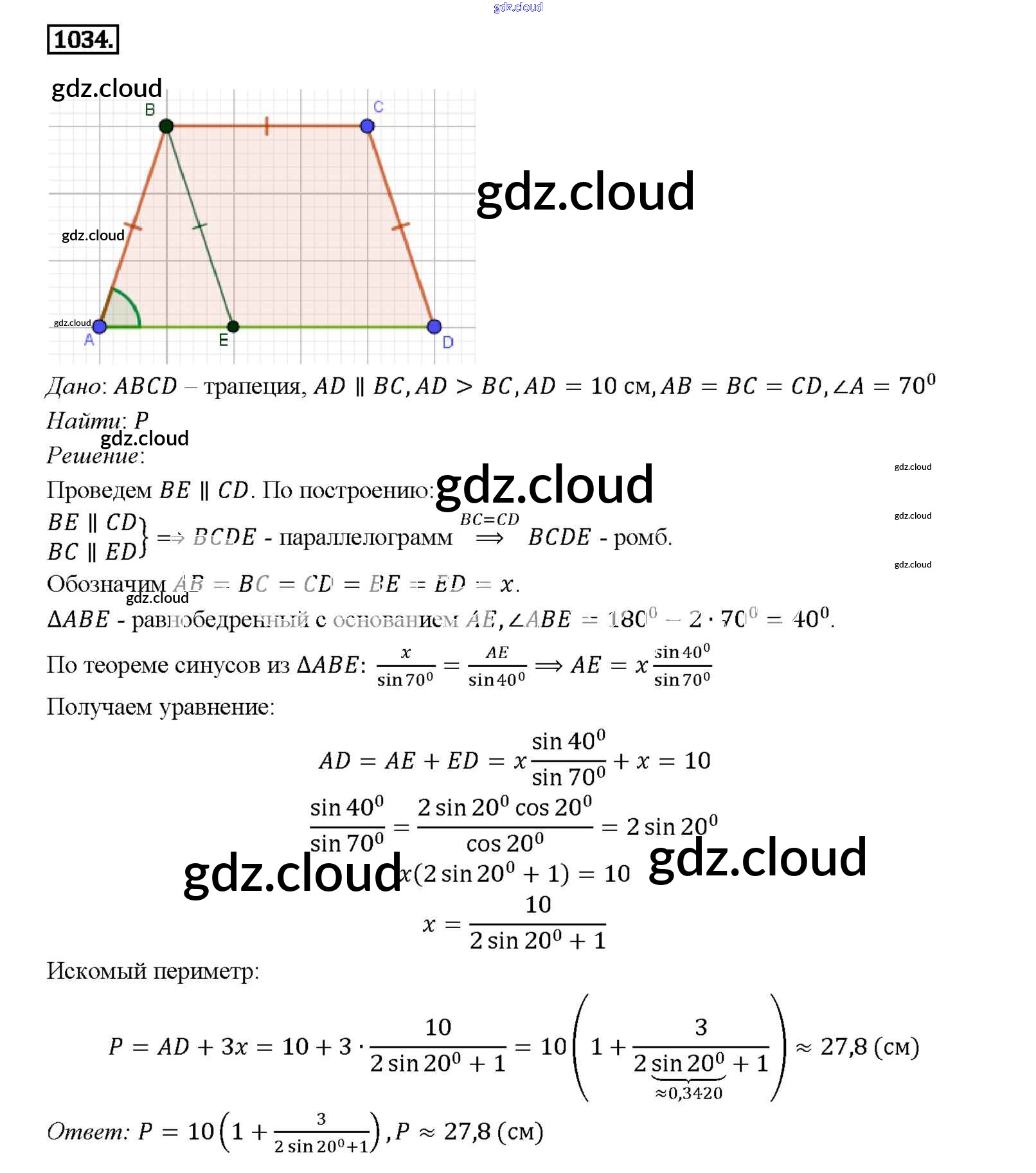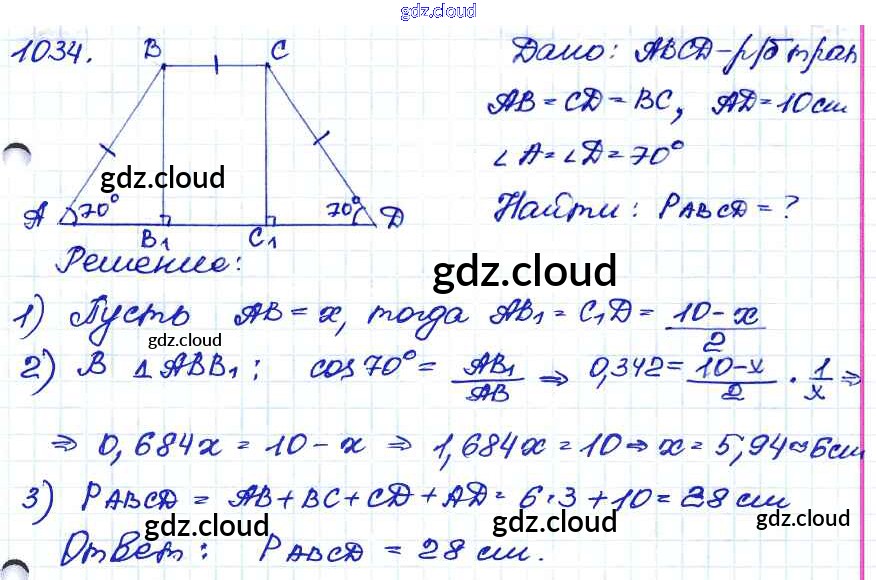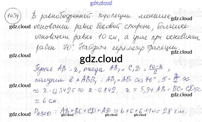 Ответ на задание 1034 Учебник Геометрия за 7, 8, 9 (седьмой, восьмой, девятый) класс Атанасян, Бутузов, Кадомцев 2010