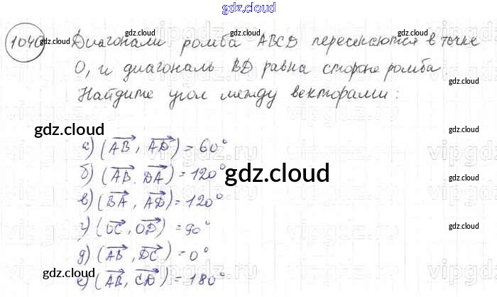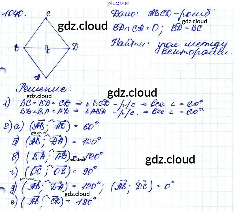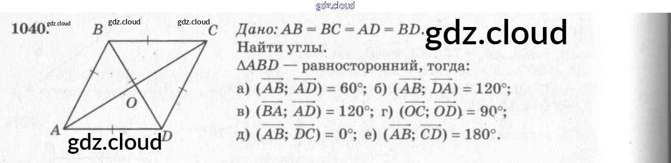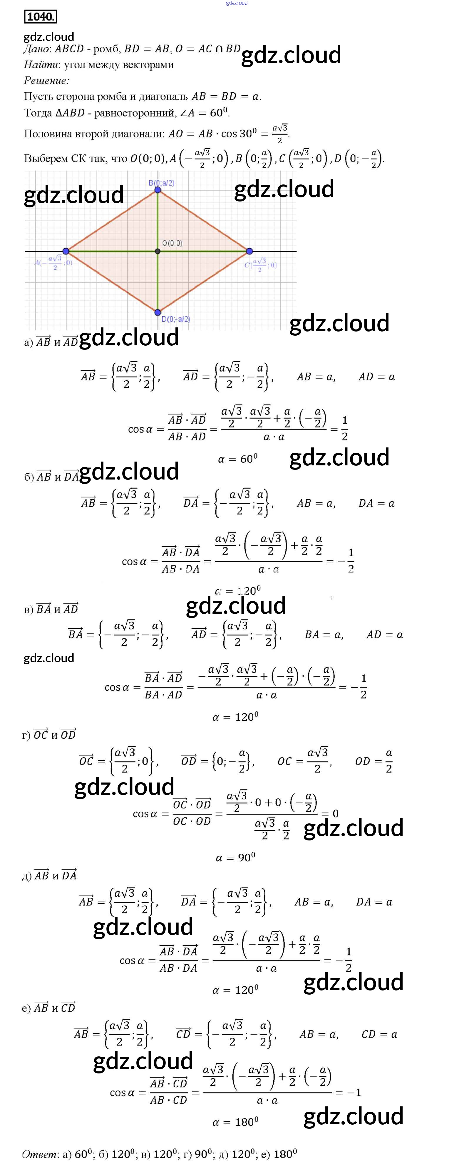 Ответ на задание 1040 Учебник Геометрия за 7, 8, 9 (седьмой, восьмой, девятый) класс Атанасян, Бутузов, Кадомцев 2010