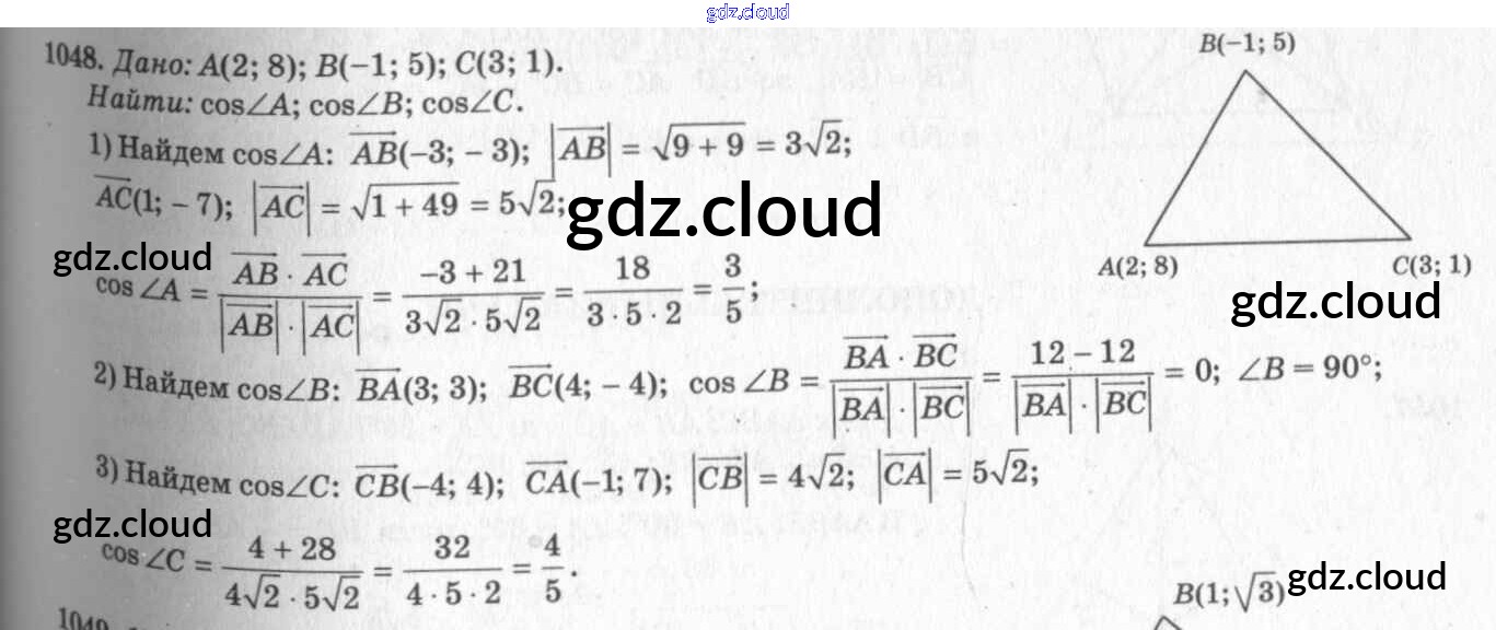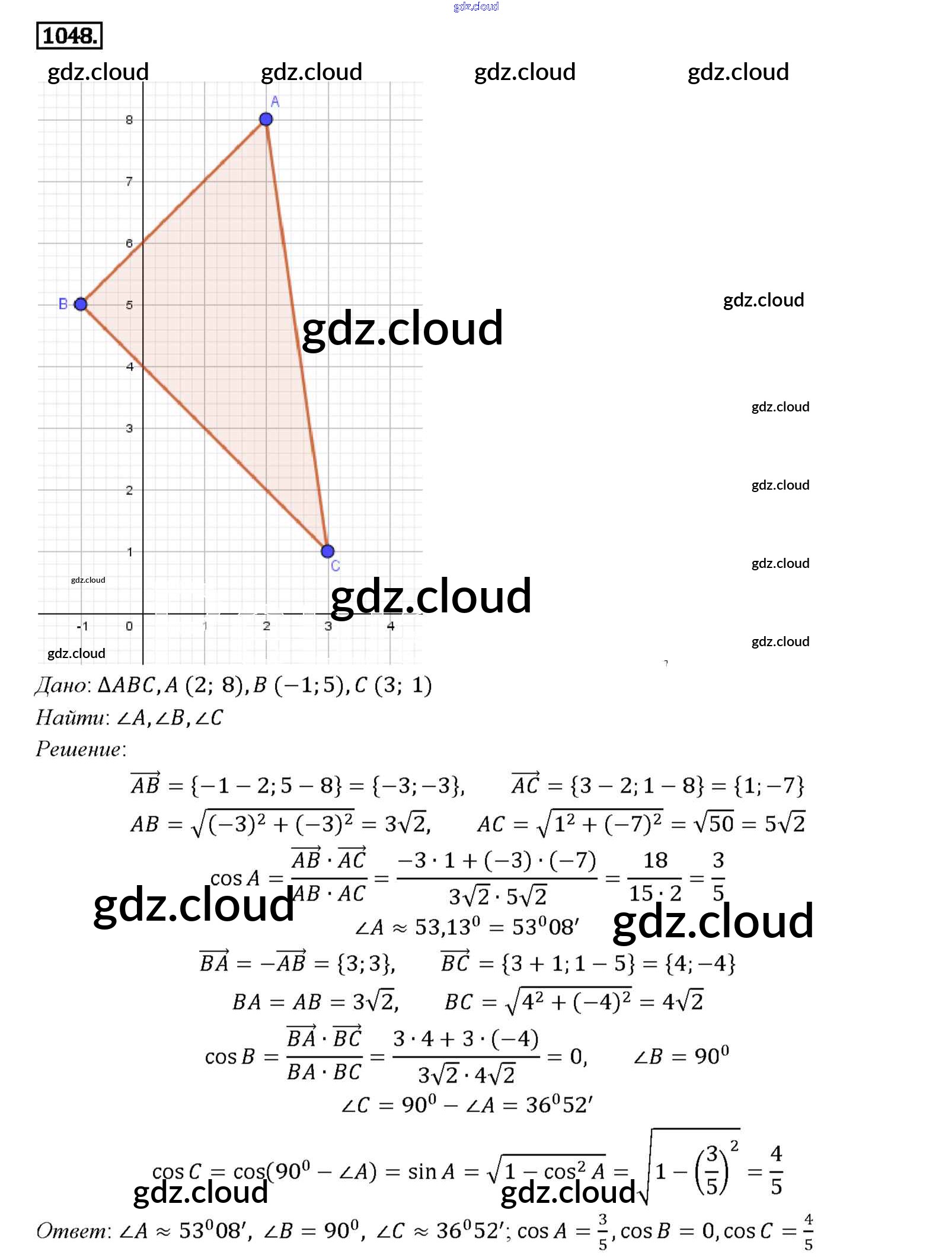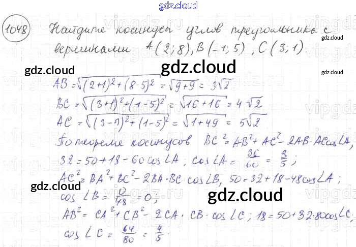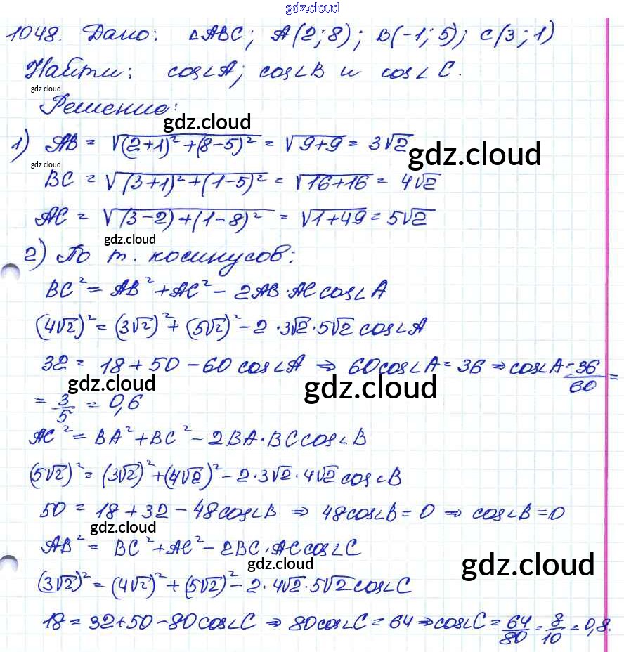 Ответ на задание 1048 Учебник Геометрия за 7, 8, 9 (седьмой, восьмой, девятый) класс Атанасян, Бутузов, Кадомцев 2010