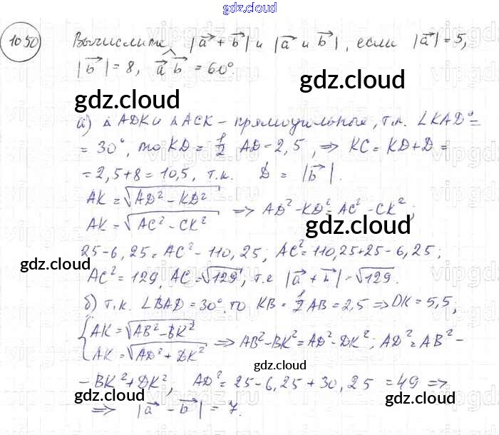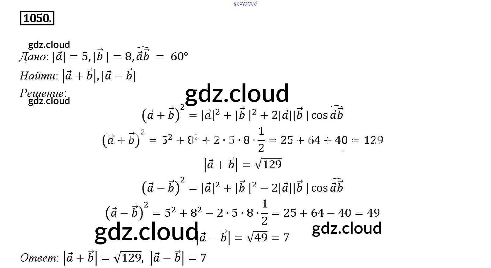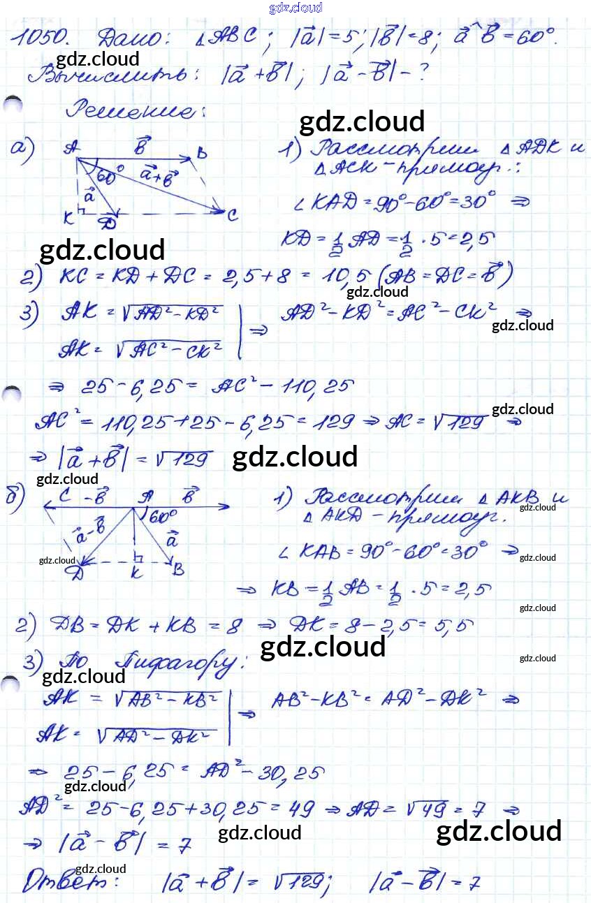 Ответ на задание 1050 Учебник Геометрия за 7, 8, 9 (седьмой, восьмой, девятый) класс Атанасян, Бутузов, Кадомцев 2010