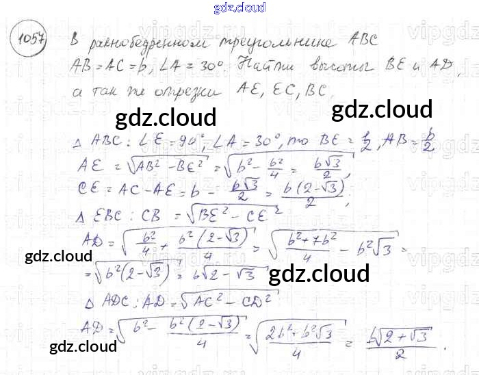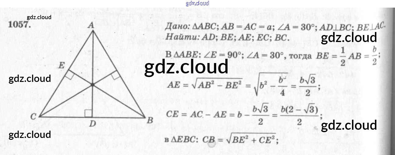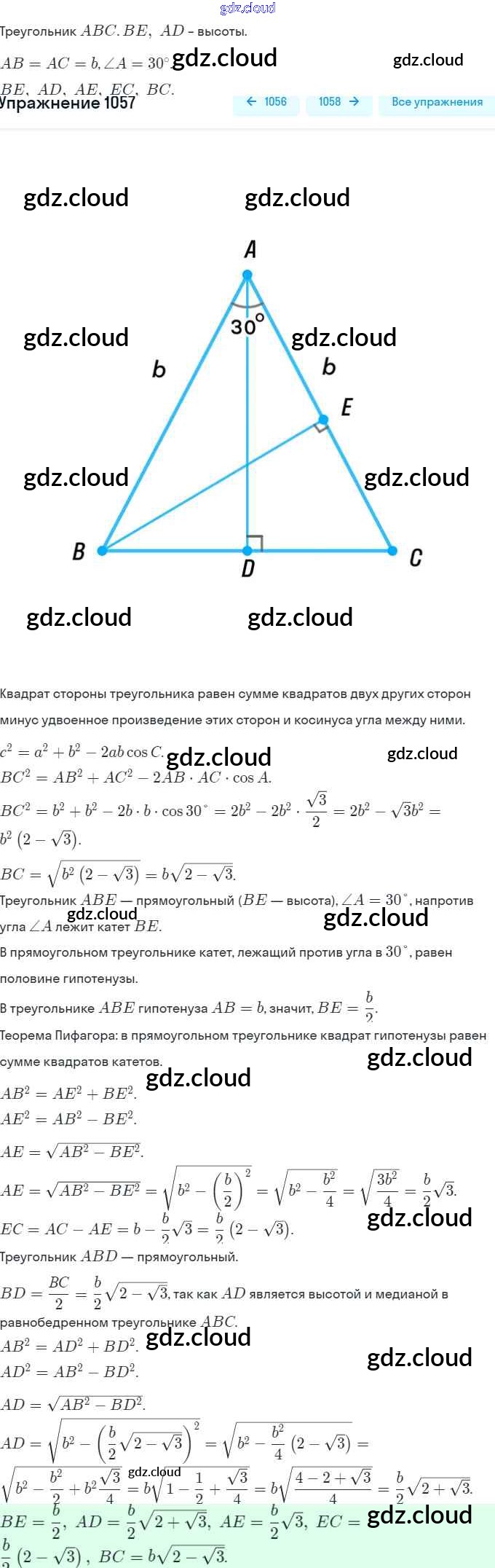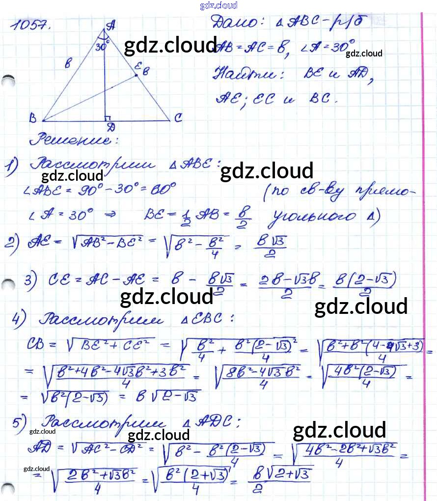 Ответ на задание 1057 Учебник Геометрия за 7, 8, 9 (седьмой, восьмой, девятый) класс Атанасян, Бутузов, Кадомцев 2010