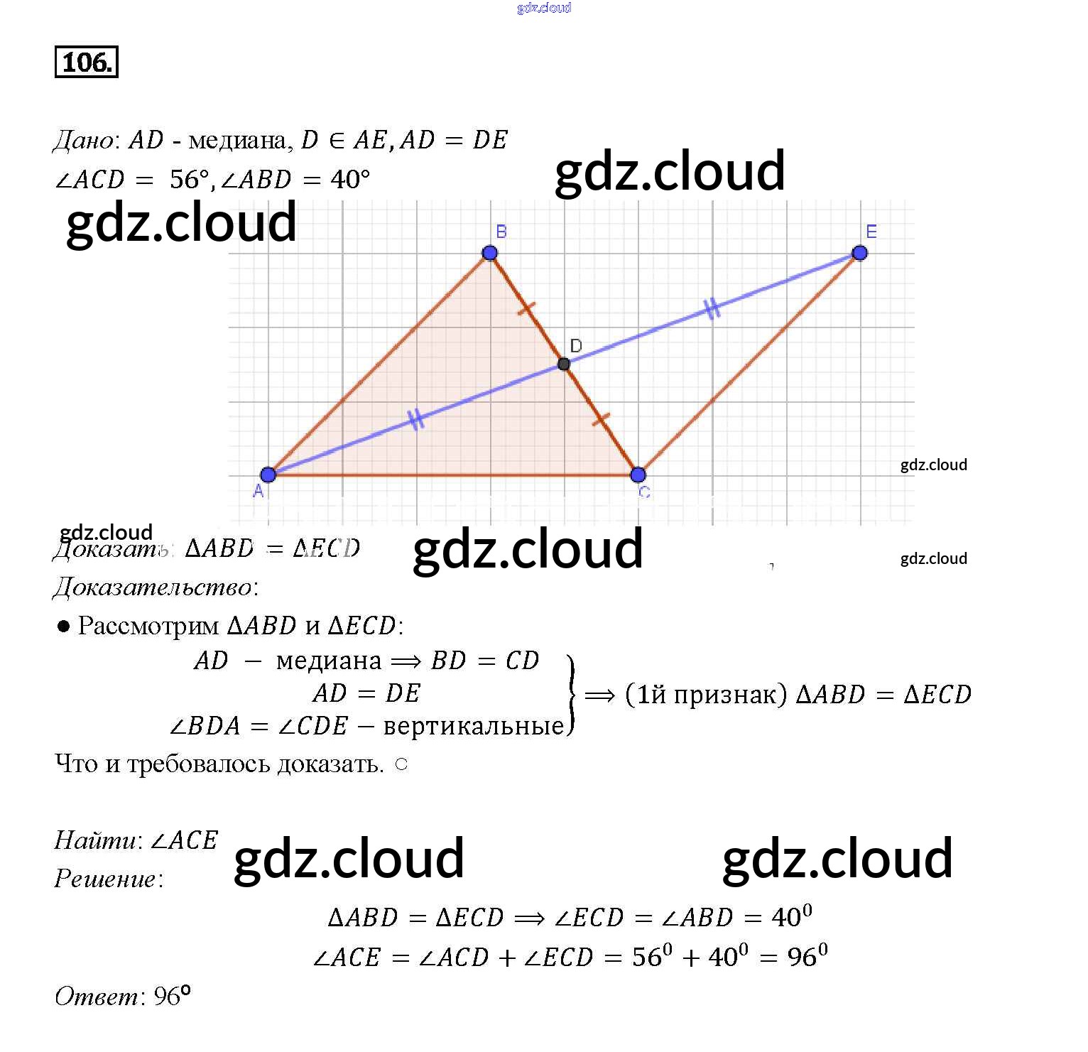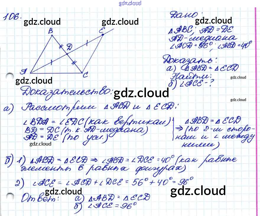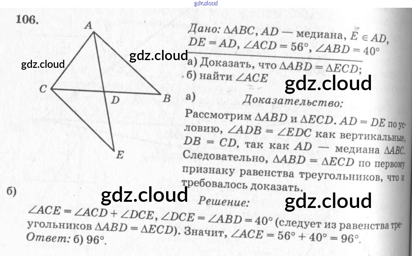 Ответ на задание 106 Учебник Геометрия за 7, 8, 9 (седьмой, восьмой, девятый) класс Атанасян, Бутузов, Кадомцев 2010
