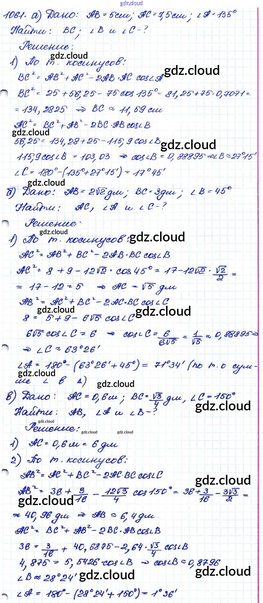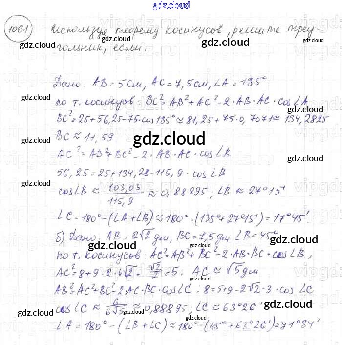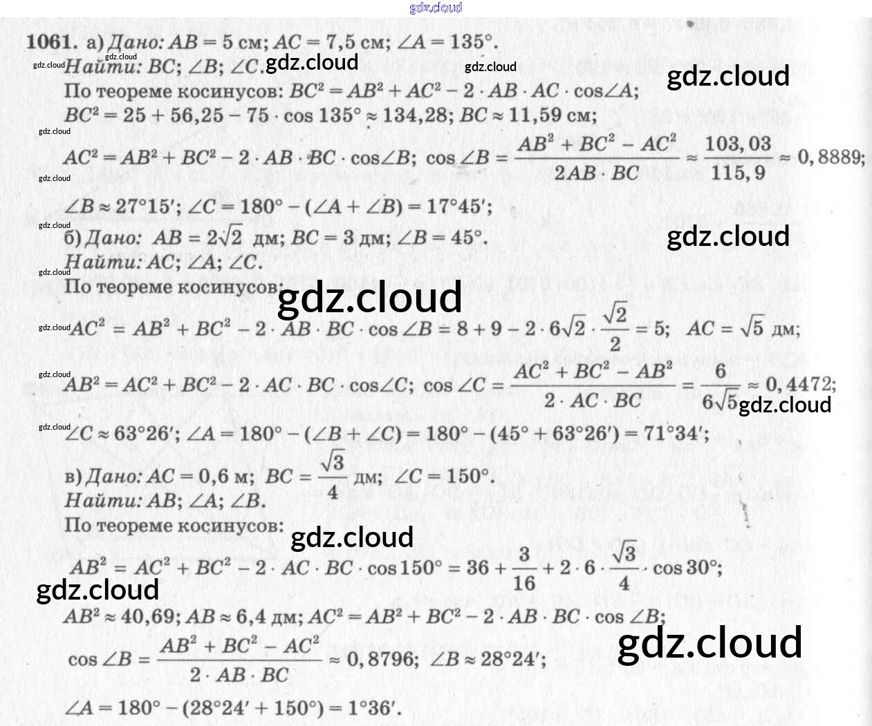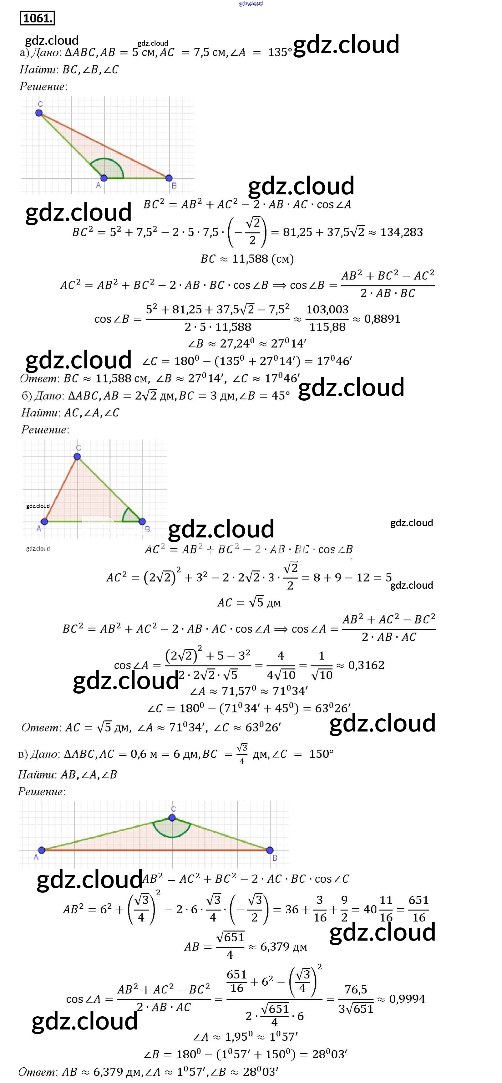 Ответ на задание 1061 Учебник Геометрия за 7, 8, 9 (седьмой, восьмой, девятый) класс Атанасян, Бутузов, Кадомцев 2010