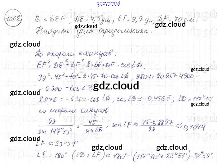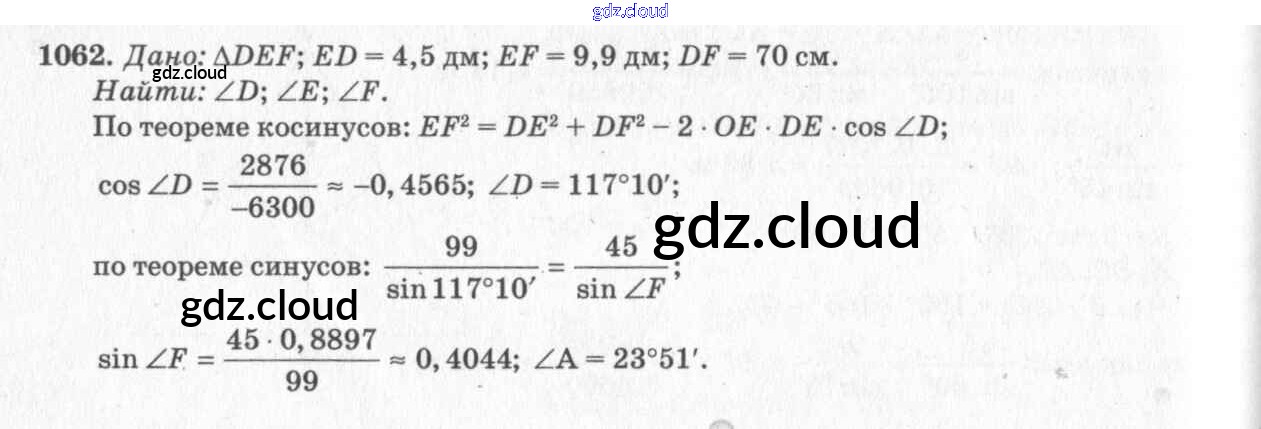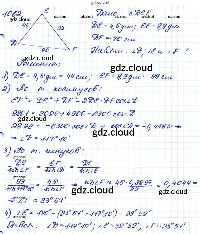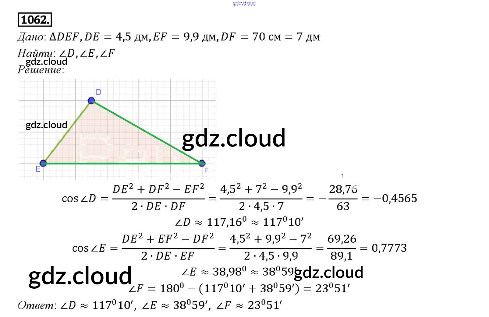 Ответ на задание 1062 Учебник Геометрия за 7, 8, 9 (седьмой, восьмой, девятый) класс Атанасян, Бутузов, Кадомцев 2010