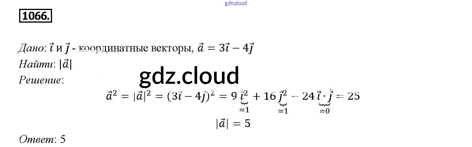 Ответ на задание 1066 Учебник Геометрия за 7, 8, 9 (седьмой, восьмой, девятый) класс Атанасян, Бутузов, Кадомцев 2010