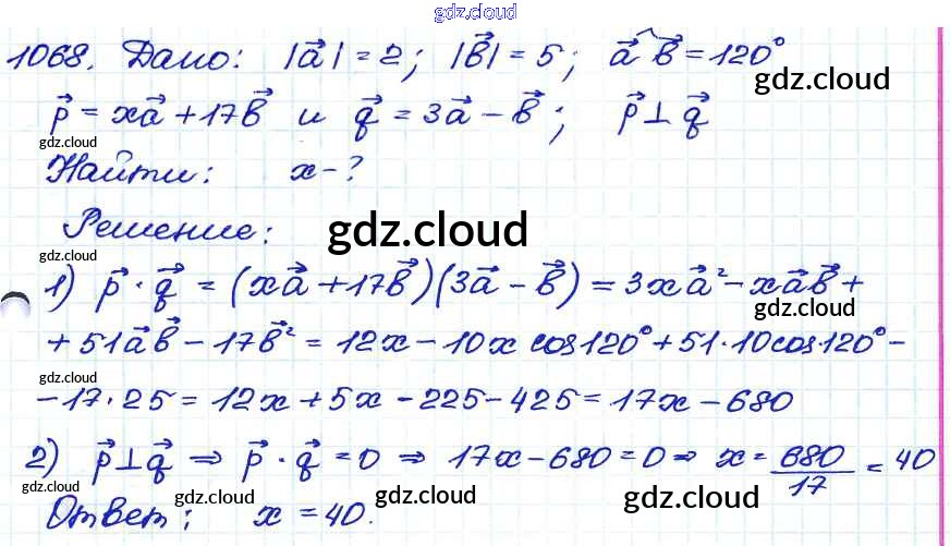 Ответ на задание 1068 Учебник Геометрия за 7, 8, 9 (седьмой, восьмой, девятый) класс Атанасян, Бутузов, Кадомцев 2010