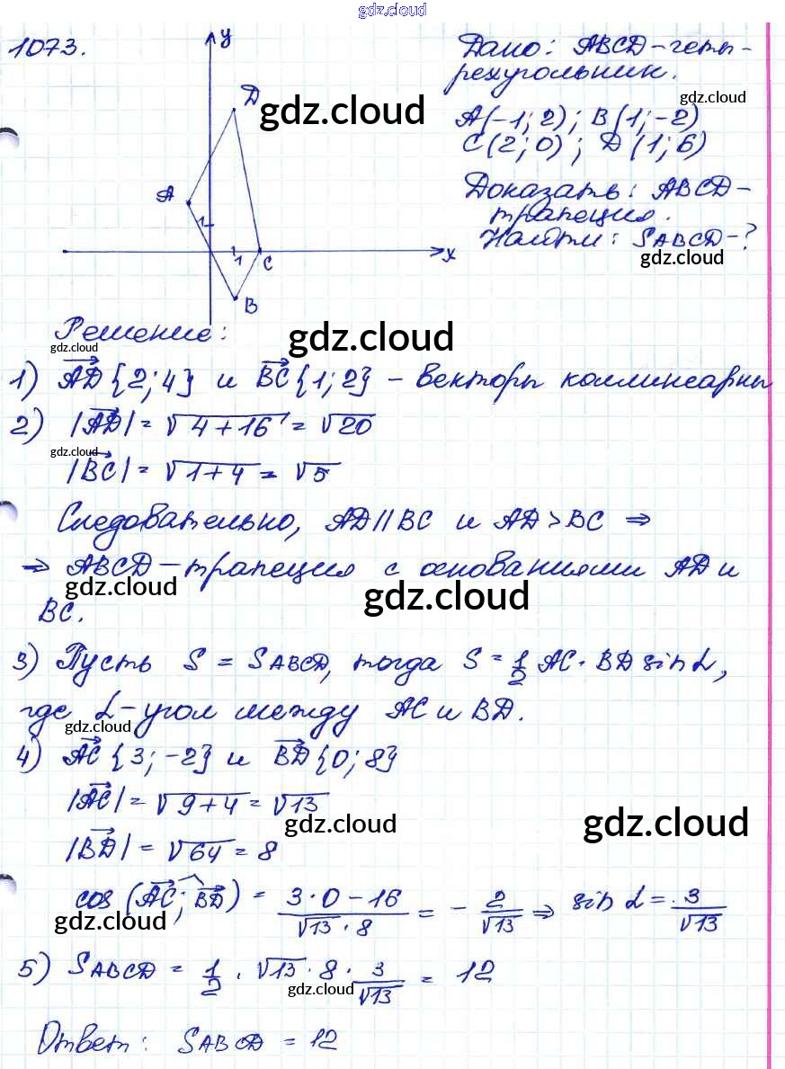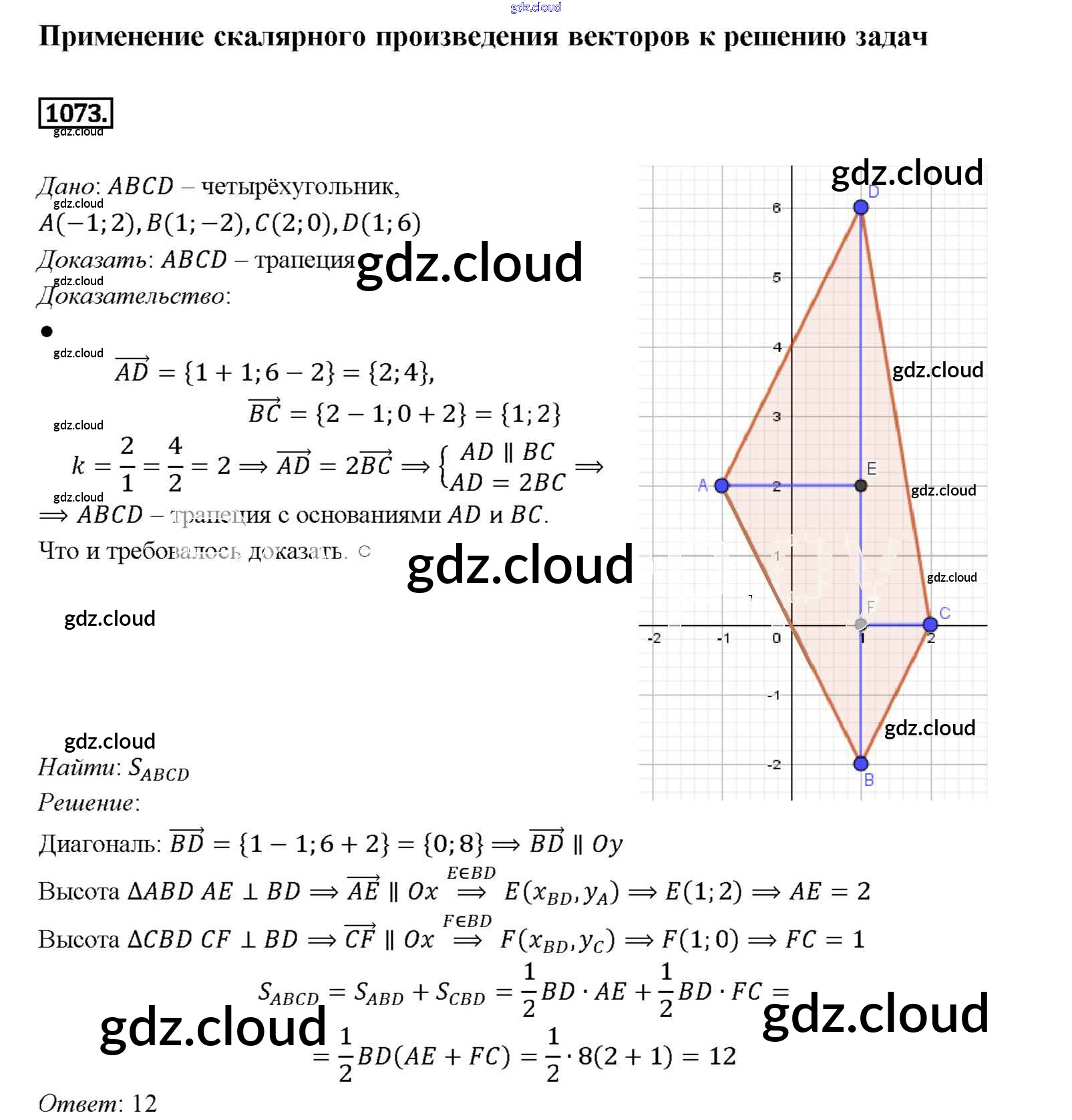 Ответ на задание 1073 Учебник Геометрия за 7, 8, 9 (седьмой, восьмой, девятый) класс Атанасян, Бутузов, Кадомцев 2010