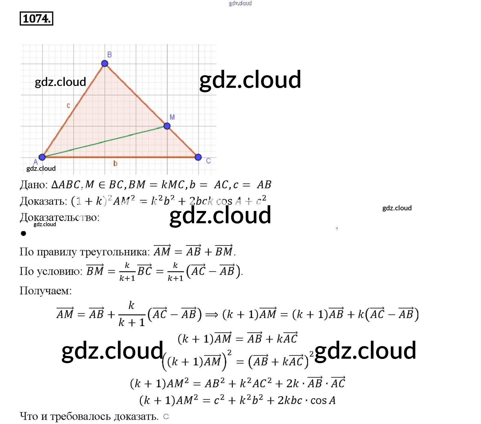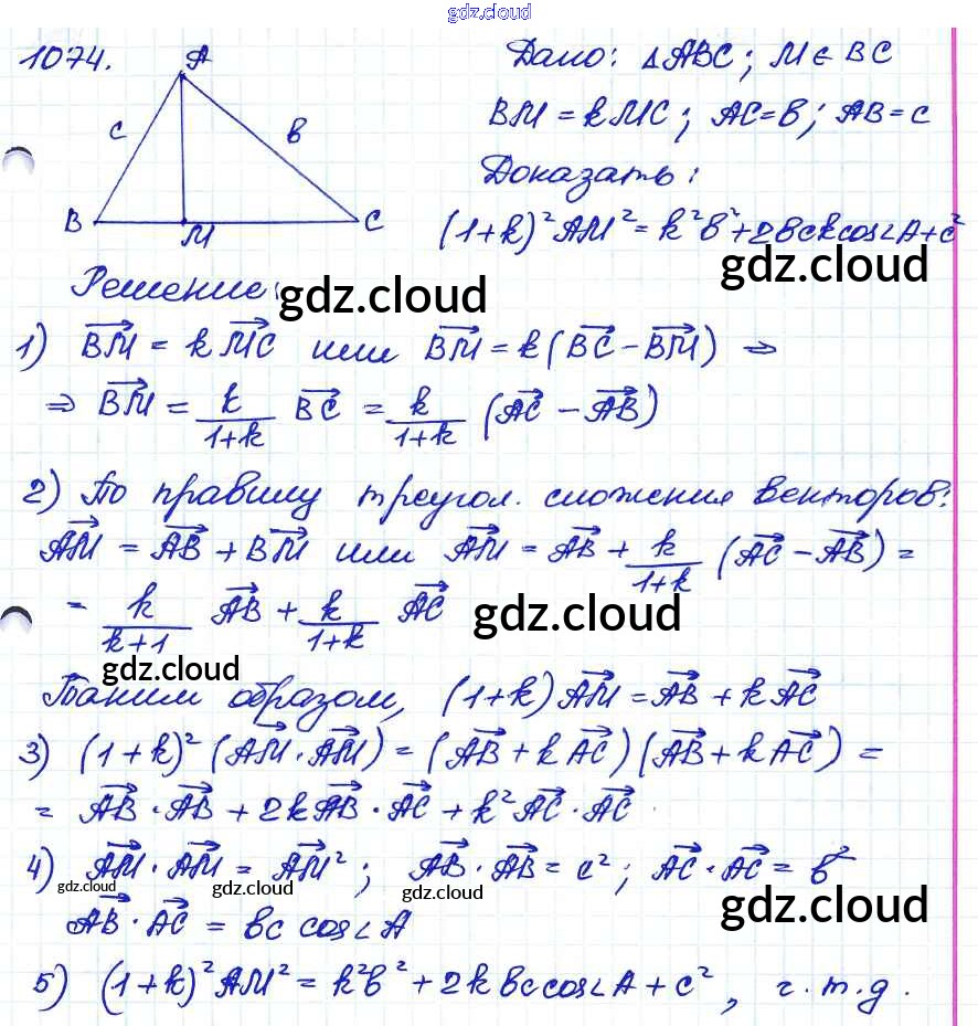 Ответ на задание 1074 Учебник Геометрия за 7, 8, 9 (седьмой, восьмой, девятый) класс Атанасян, Бутузов, Кадомцев 2010