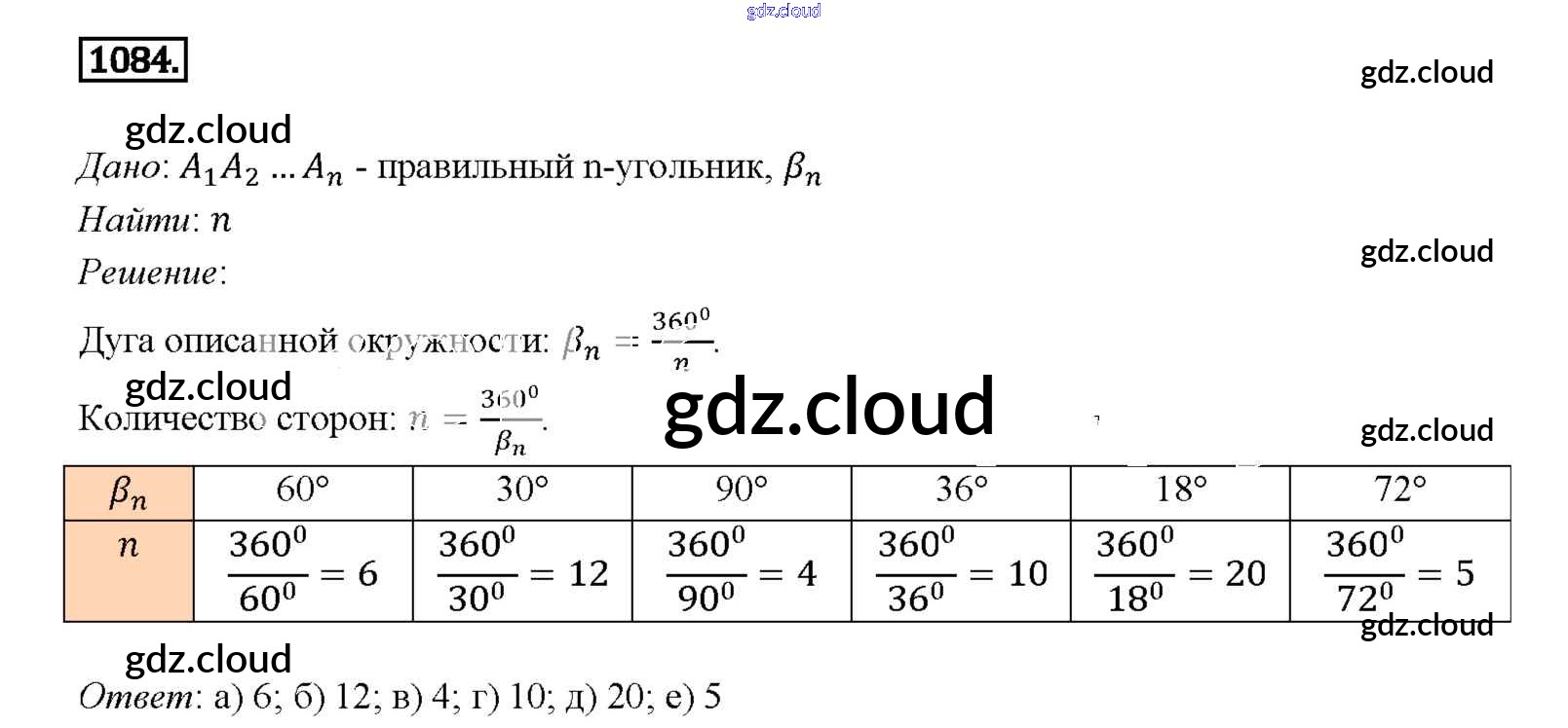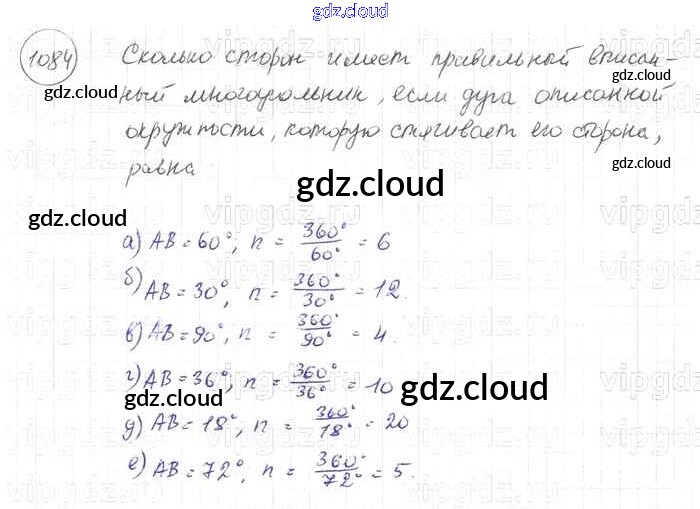 Ответ на задание 1084 Учебник Геометрия за 7, 8, 9 (седьмой, восьмой, девятый) класс Атанасян, Бутузов, Кадомцев 2010