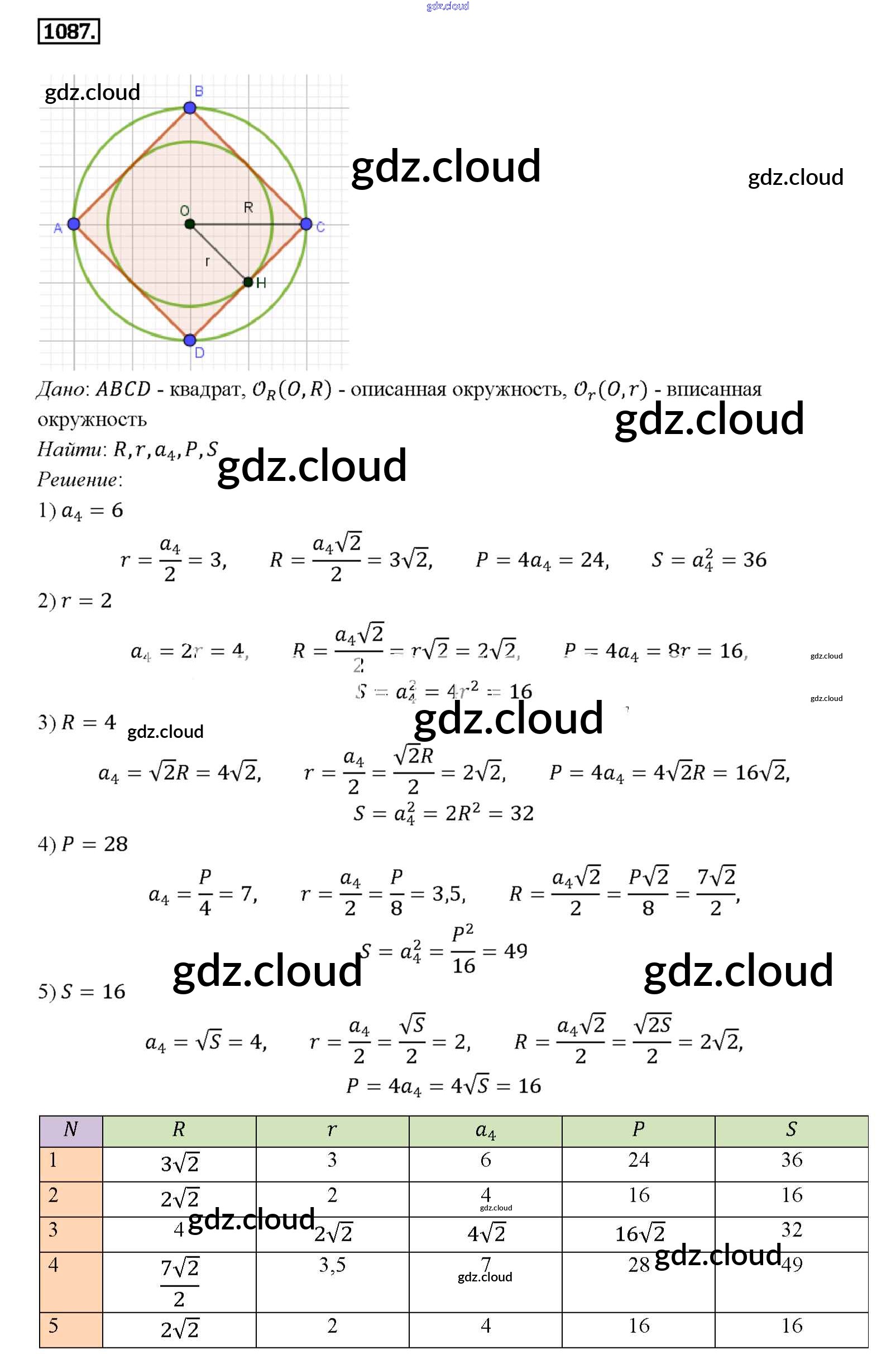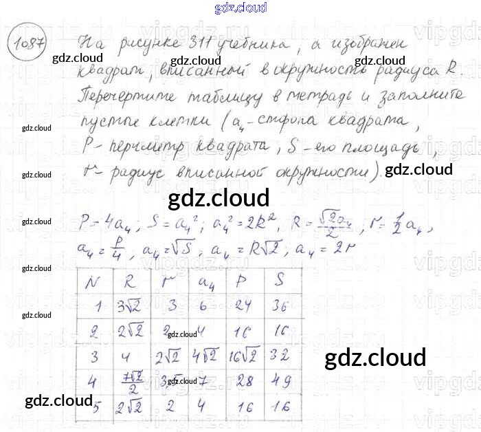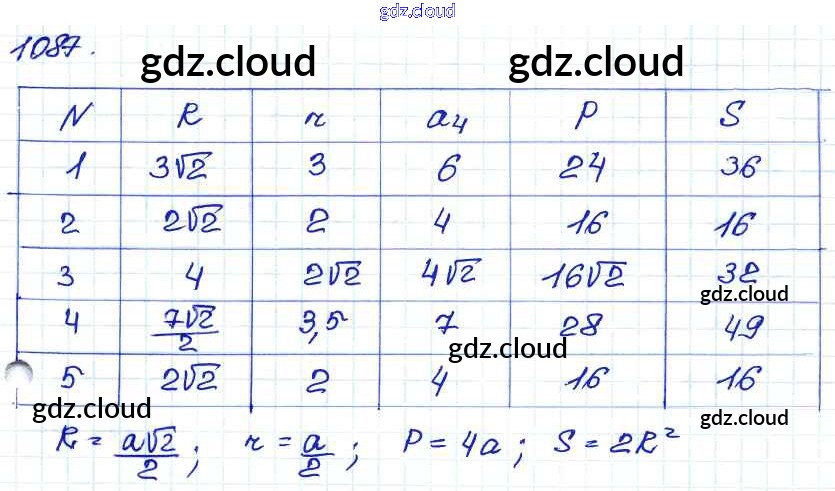 Ответ на задание 1087 Учебник Геометрия за 7, 8, 9 (седьмой, восьмой, девятый) класс Атанасян, Бутузов, Кадомцев 2010