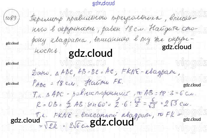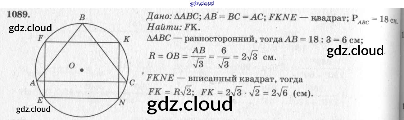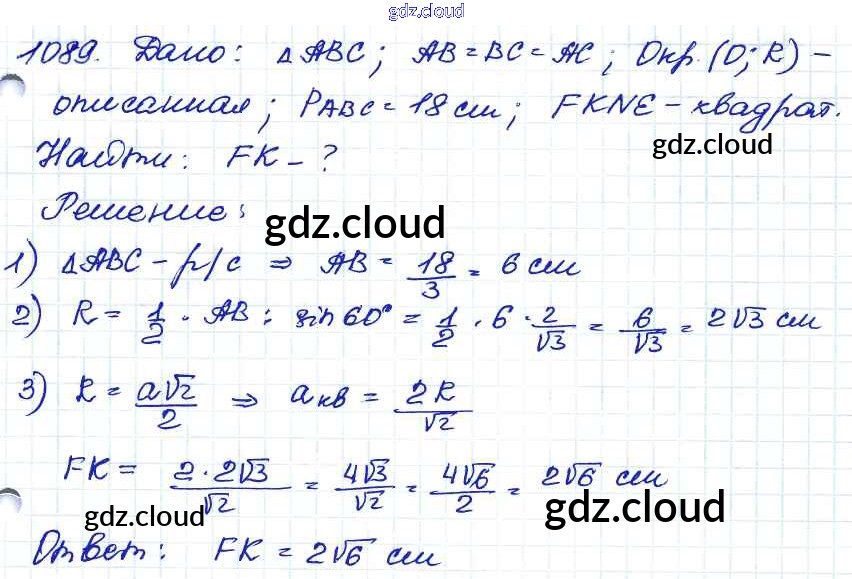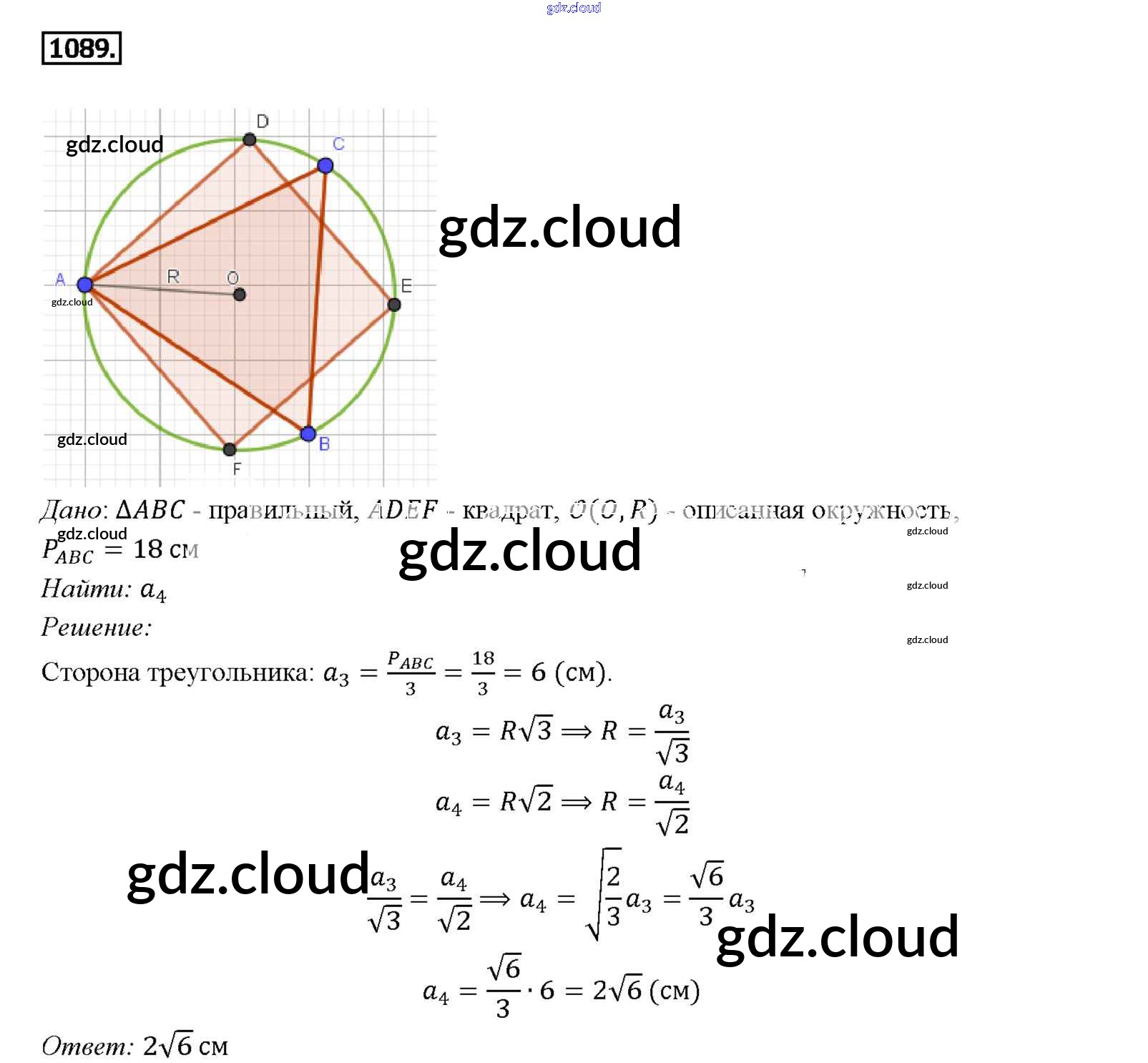 Ответ на задание 1089 Учебник Геометрия за 7, 8, 9 (седьмой, восьмой, девятый) класс Атанасян, Бутузов, Кадомцев 2010