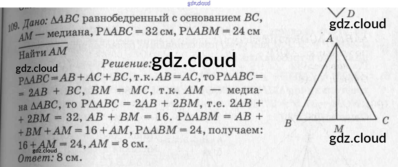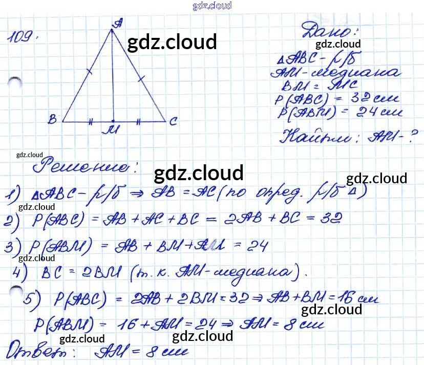 Ответ на задание 109 Учебник Геометрия за 7, 8, 9 (седьмой, восьмой, девятый) класс Атанасян, Бутузов, Кадомцев 2010