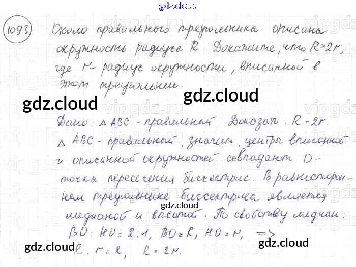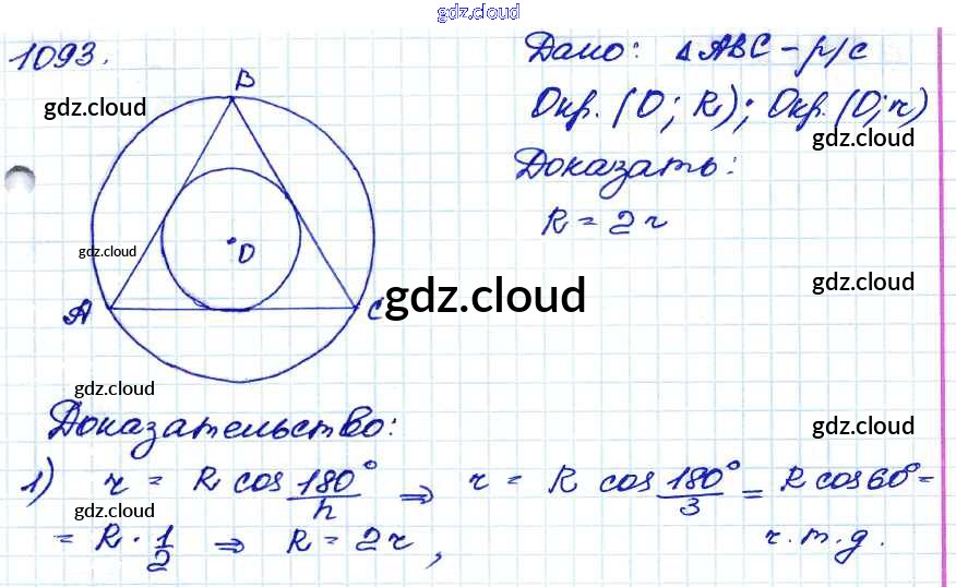 Ответ на задание 1093 Учебник Геометрия за 7, 8, 9 (седьмой, восьмой, девятый) класс Атанасян, Бутузов, Кадомцев 2010