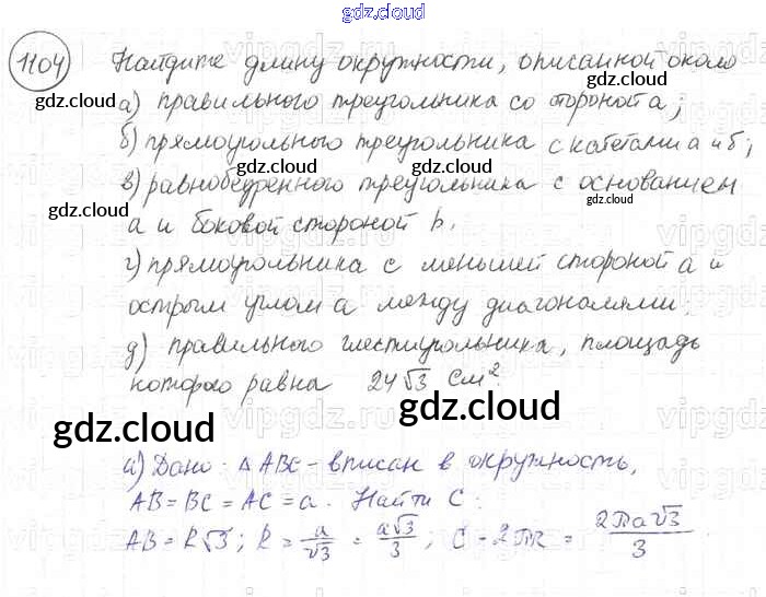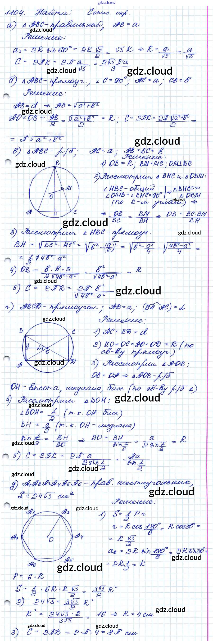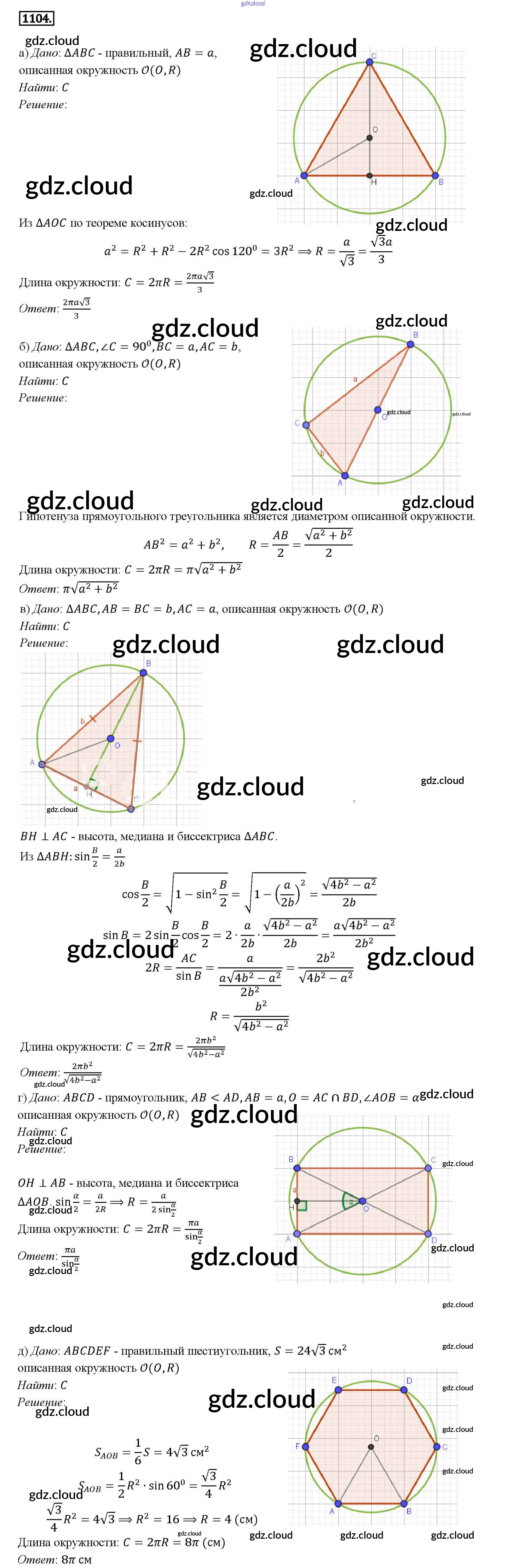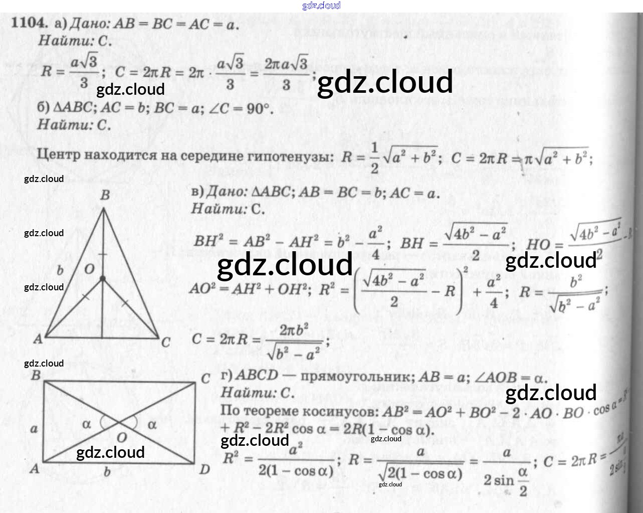 Ответ на задание 1104 Учебник Геометрия за 7, 8, 9 (седьмой, восьмой, девятый) класс Атанасян, Бутузов, Кадомцев 2010