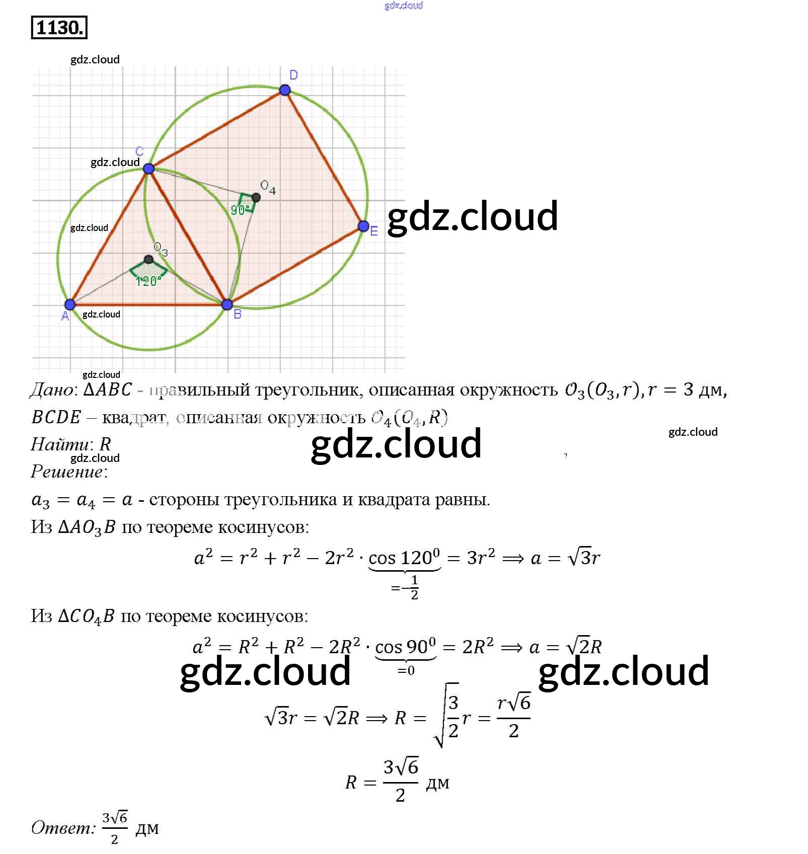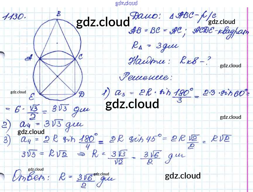 Ответ на задание 1130 Учебник Геометрия за 7, 8, 9 (седьмой, восьмой, девятый) класс Атанасян, Бутузов, Кадомцев 2010
