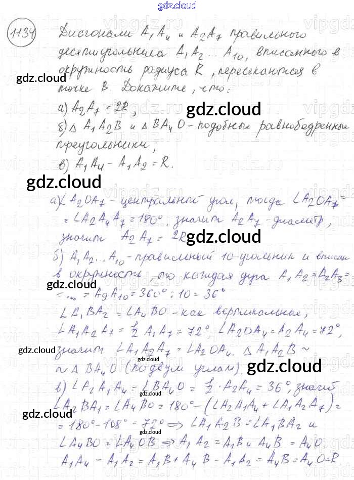 Ответ на задание 1134 Учебник Геометрия за 7, 8, 9 (седьмой, восьмой, девятый) класс Атанасян, Бутузов, Кадомцев 2010