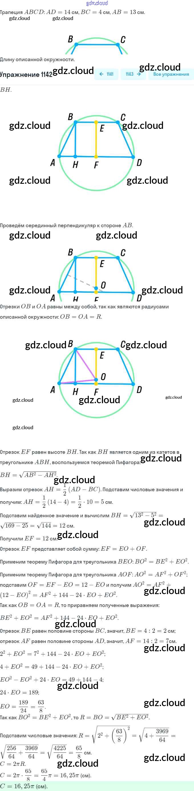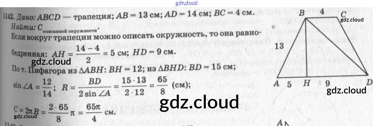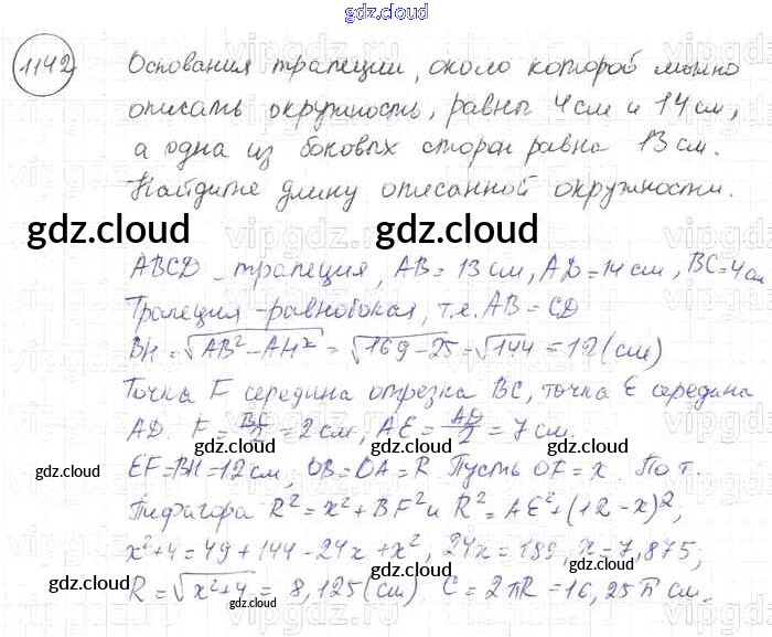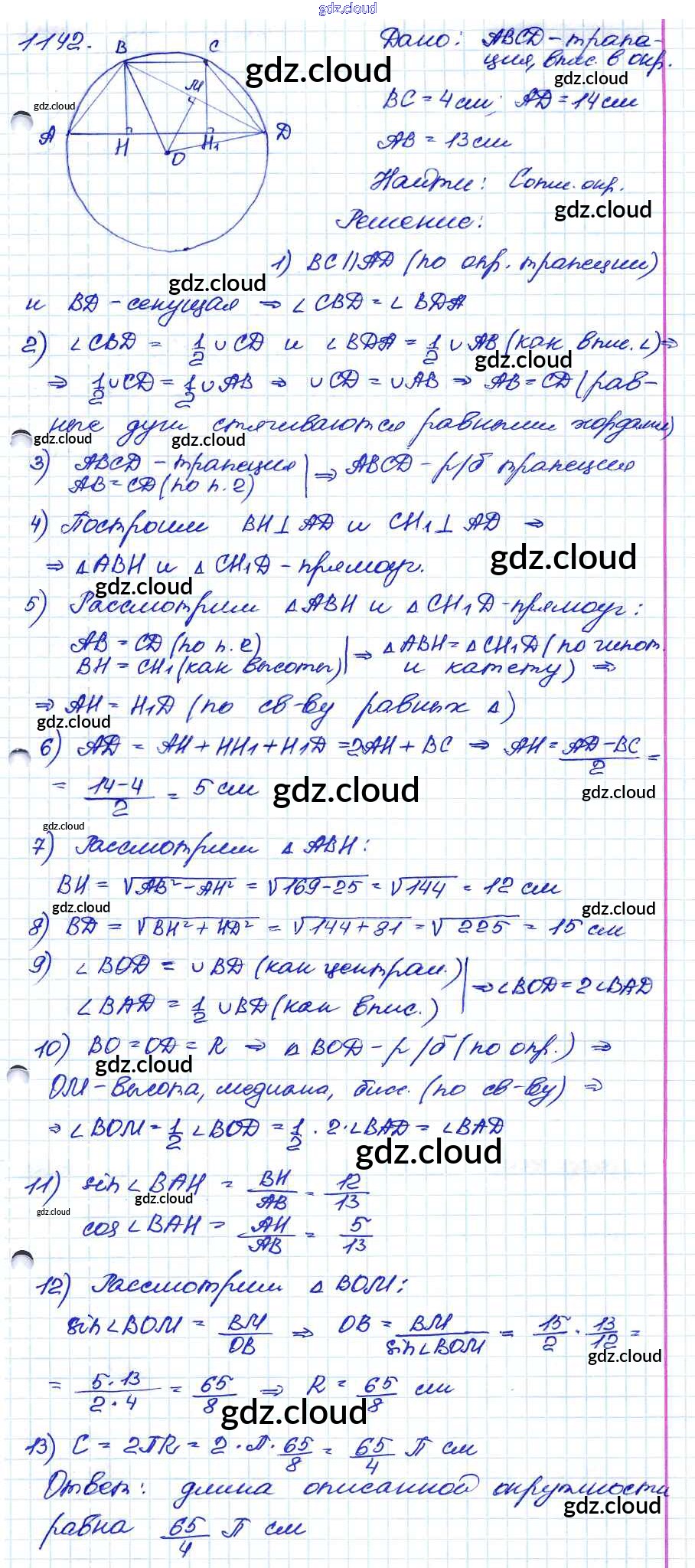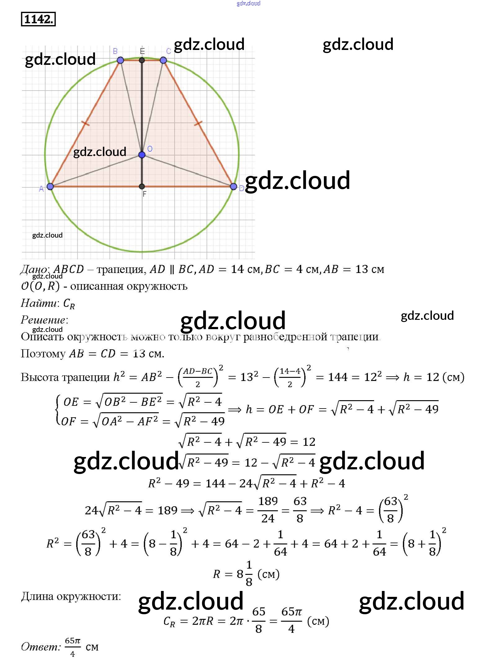 Ответ на задание 1142 Учебник Геометрия за 7, 8, 9 (седьмой, восьмой, девятый) класс Атанасян, Бутузов, Кадомцев 2010