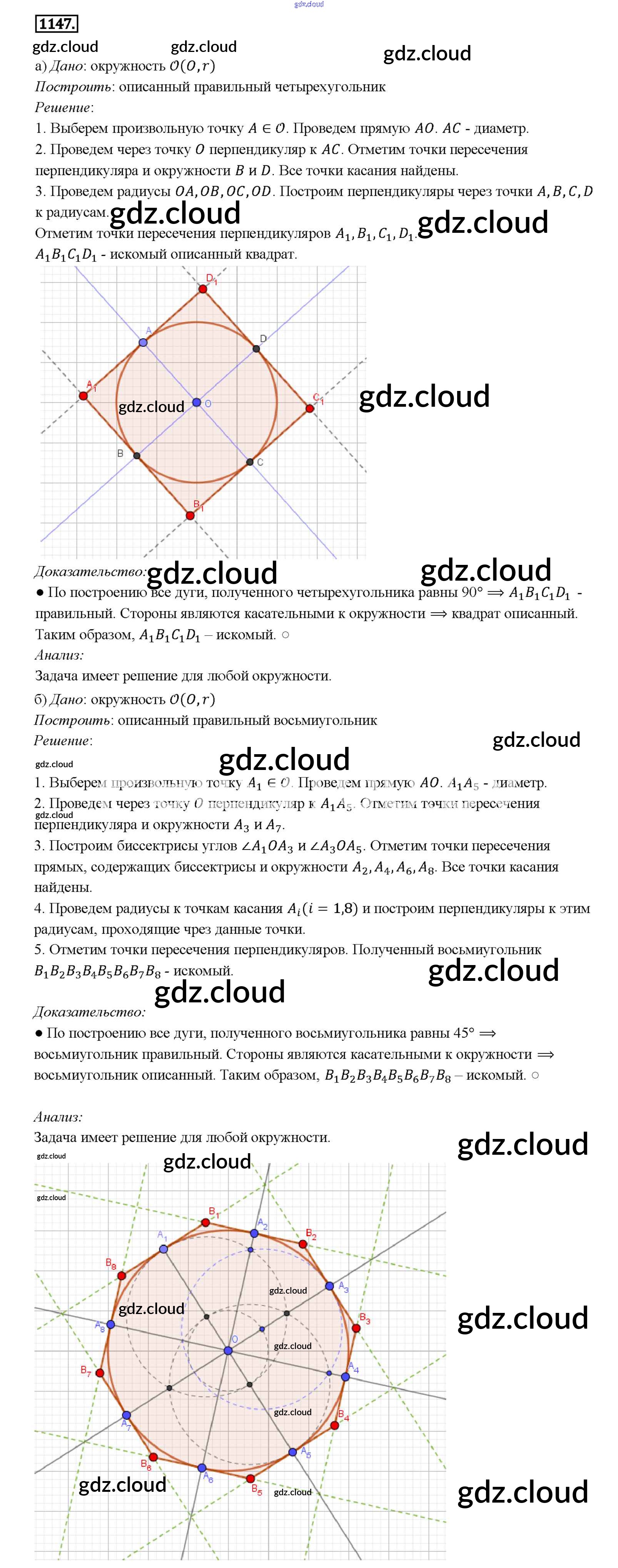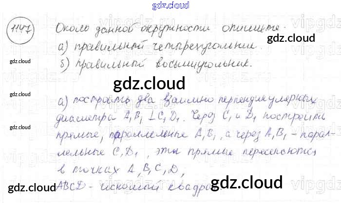 Ответ на задание 1147 Учебник Геометрия за 7, 8, 9 (седьмой, восьмой, девятый) класс Атанасян, Бутузов, Кадомцев 2010