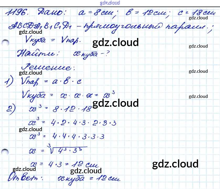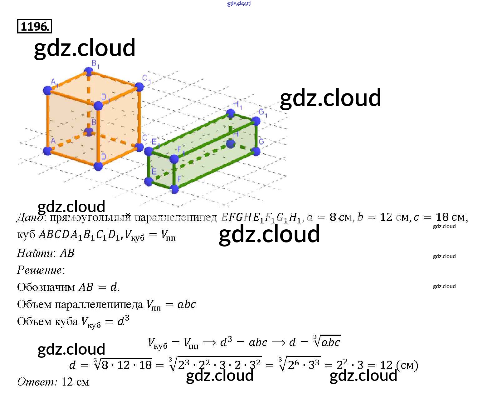 Ответ на задание 1196 Учебник Геометрия за 7, 8, 9 (седьмой, восьмой, девятый) класс Атанасян, Бутузов, Кадомцев 2010